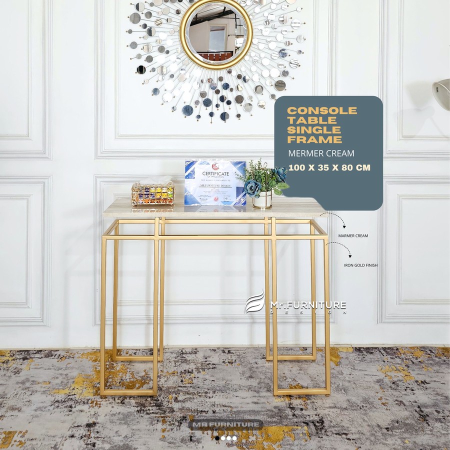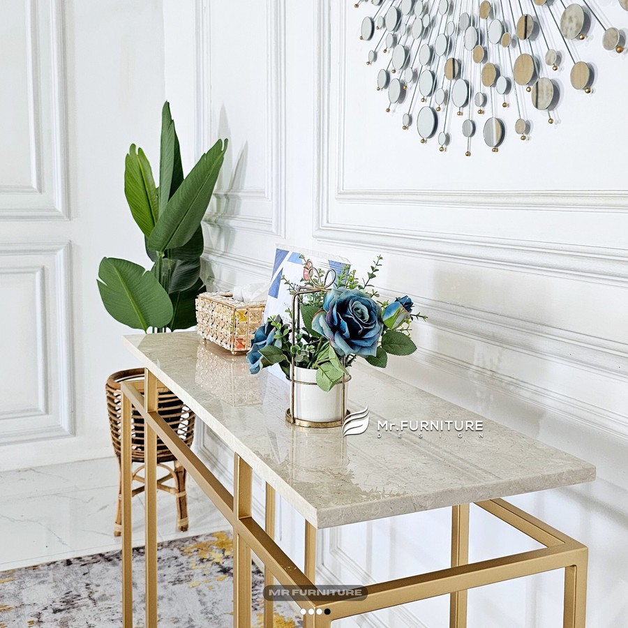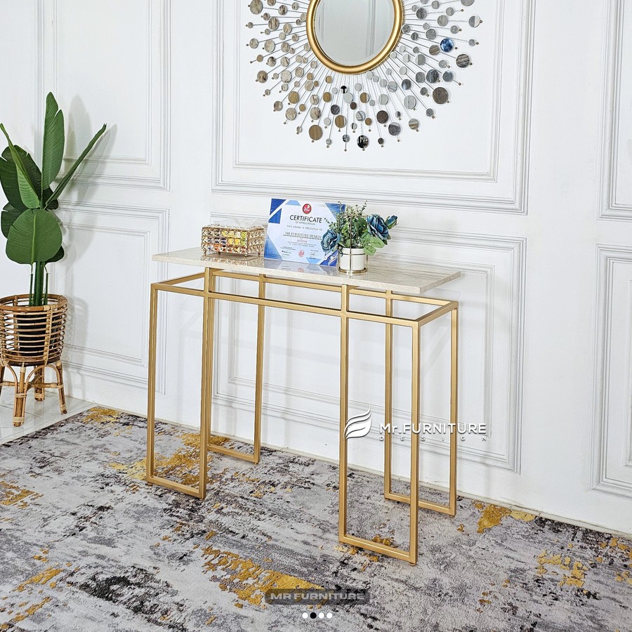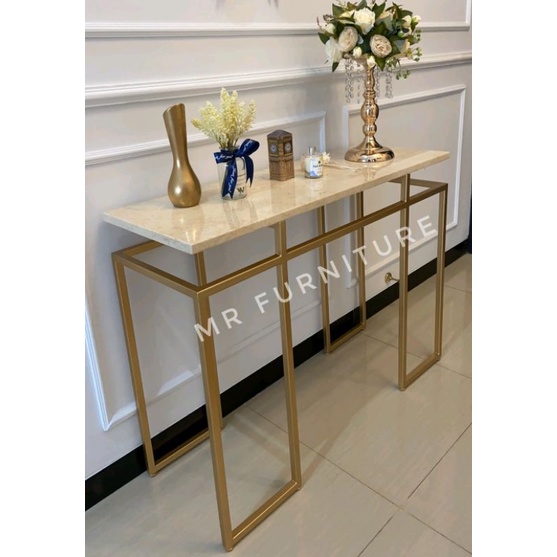 Meja Konsul Mewah Marmer Krem 100x35x80 | Rangka Besi g0.ld | Console Table Estetik Minimalis