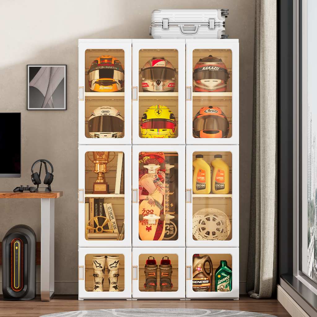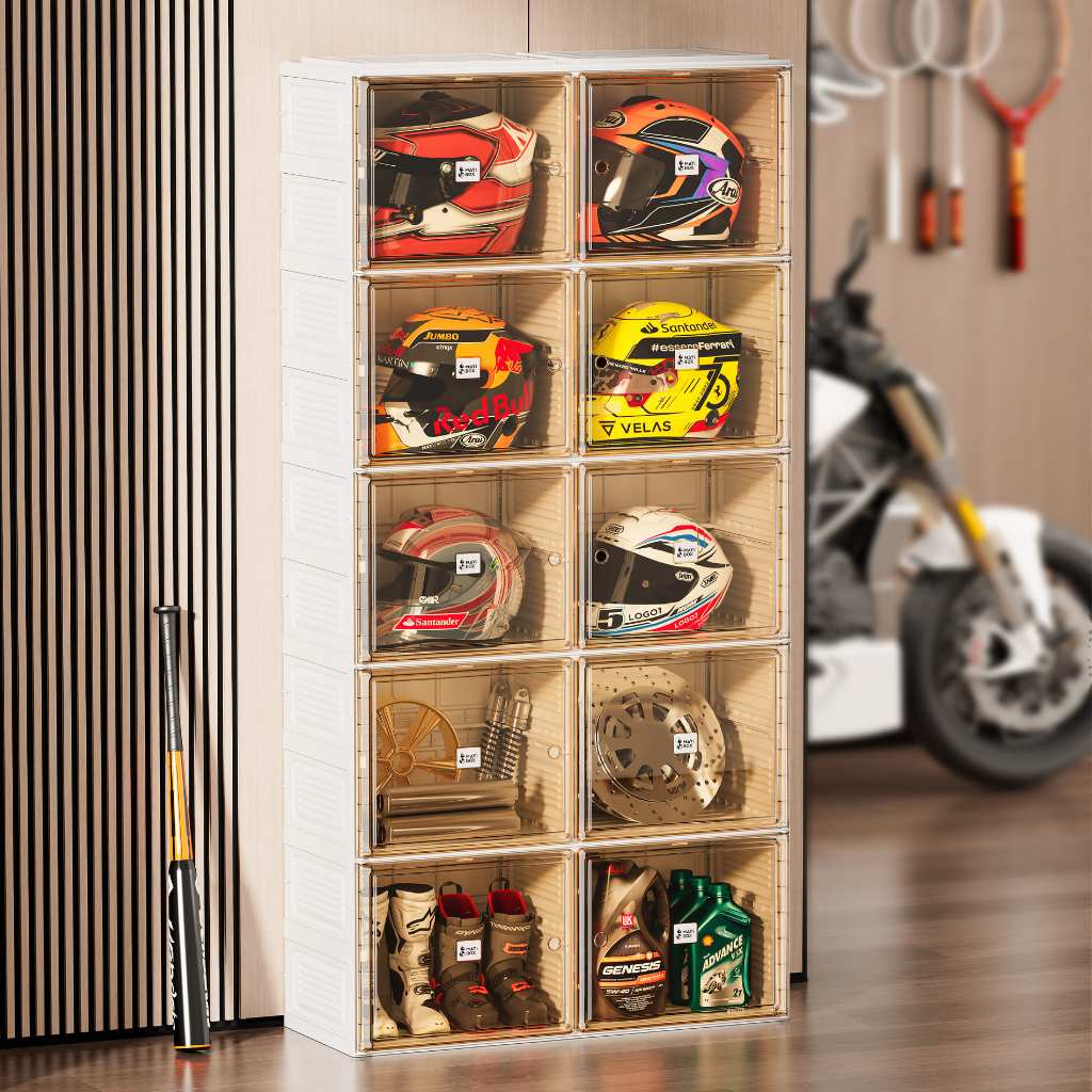 Storage Penyimpanan Serbaguna Lemari Helm 4-10 Box Lemari Anti Debu Pintu Magnet