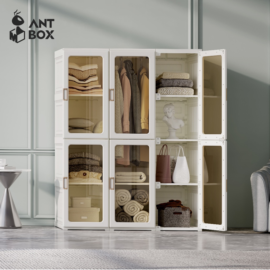 Lemari Baju Putih Transparan 12 BOX 1 Hanger Pintu Magnet Anti Debu Lemari Lipat Multifungsi