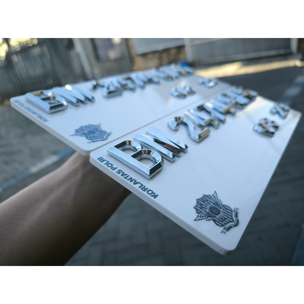 Plat Nomor Motor Variasi Timbul Segilima Chrome Plat 5mm ( baut tanam )