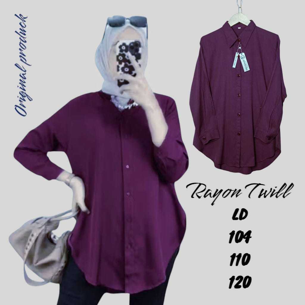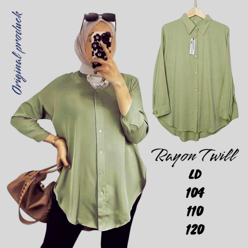 Rayon Twill Polos Kemeja Wanita Lengan Panjang