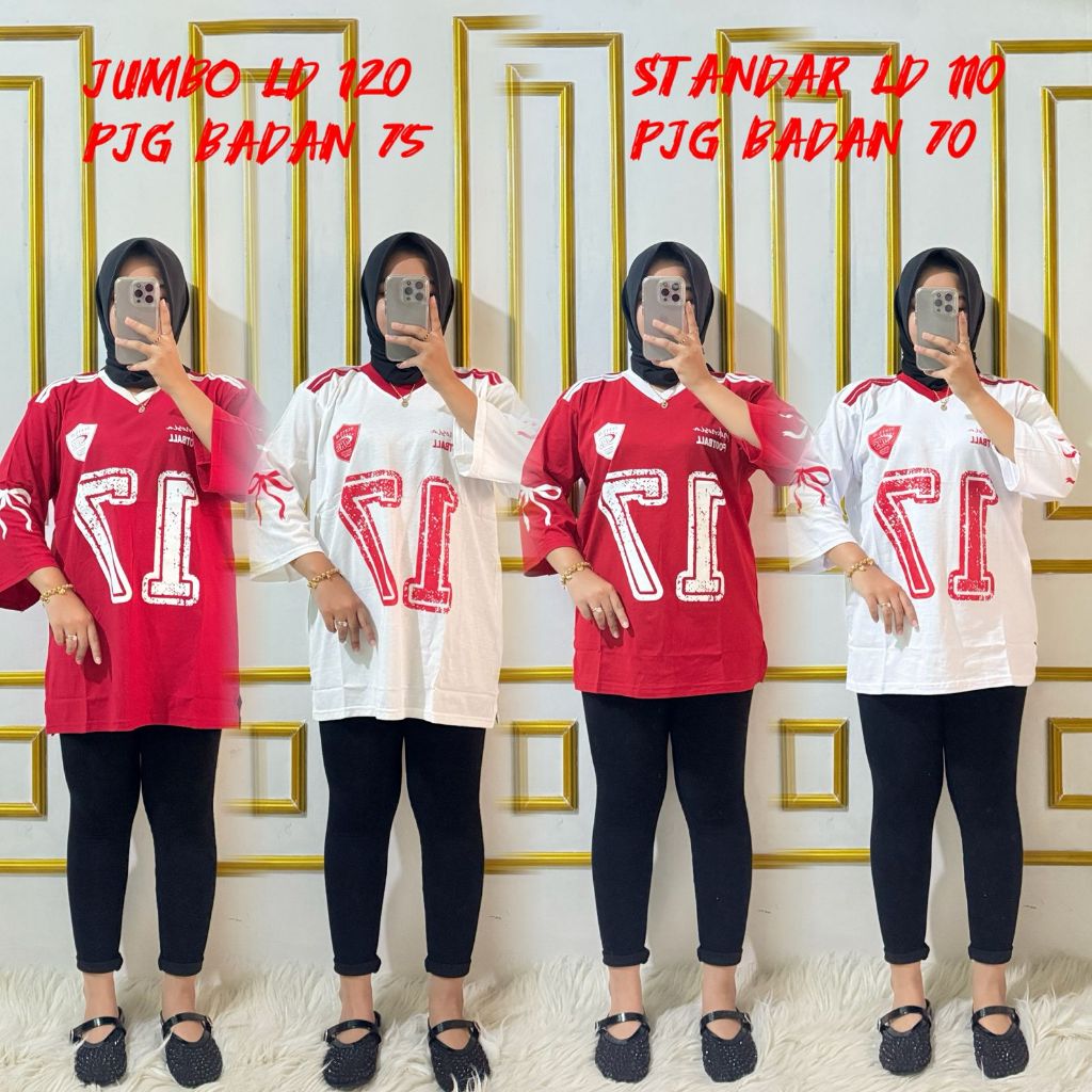 BAJU ATASAN WANITA KAOS MERAH PUTIH OVERSIZE MOTIF ANGKA
