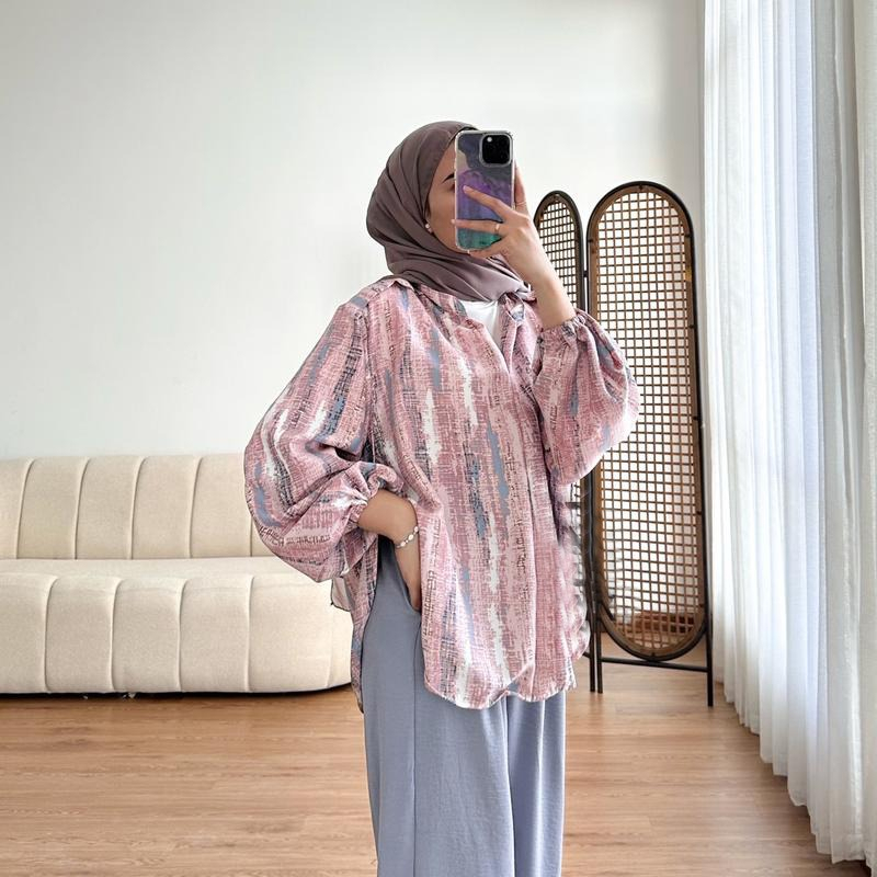 Blouse Bambu Oversize Blouse Wanita Motif Bambu
