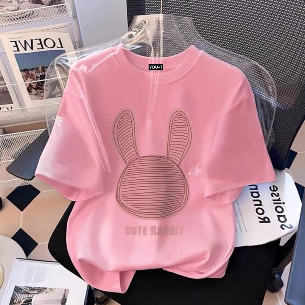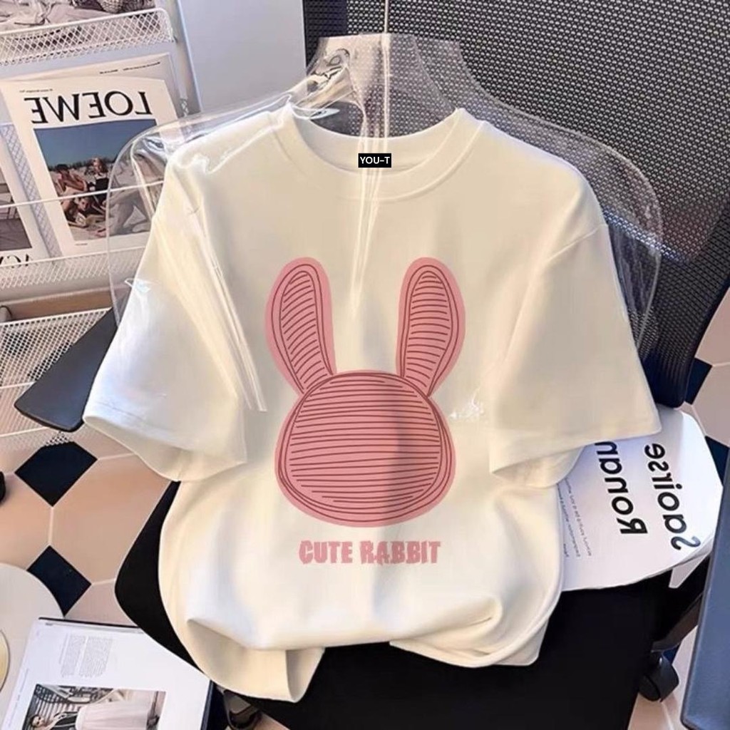 BASIQUE-CUTE RABBIT/Baju oversize Unisex/Kaos atasan wanita korea style/Baju Kaos Distro Pria/Atasan Katun Bangkok