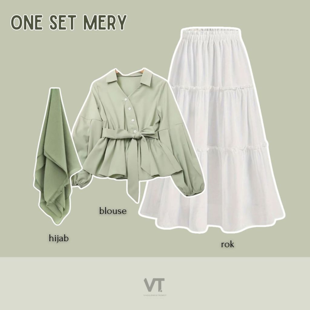One Set Mery (Hijab, Blouse, Rok) Setelan Baju Wanita hijab OOTD Korea