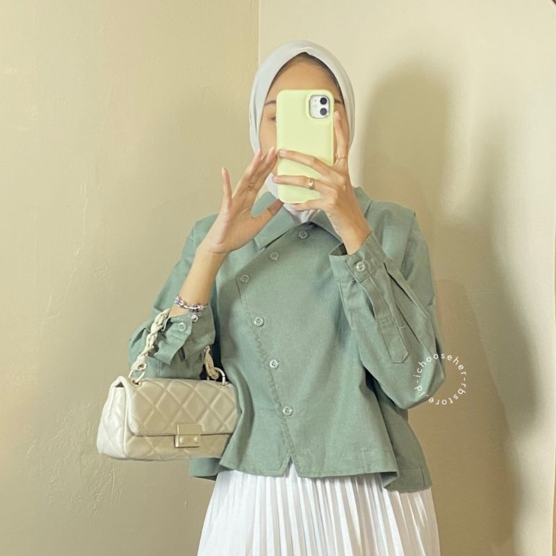 Kemeja Wanita Ivone Top Linen Atasan Crop Wanita