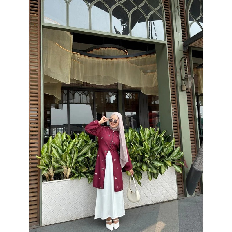 Atasan SABILA SLIT TUNIK Katun Motif Fit to L