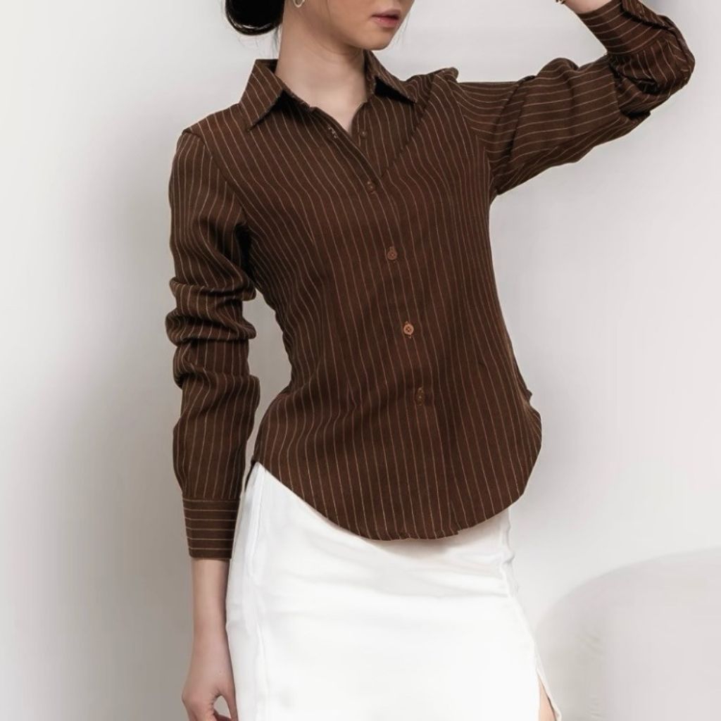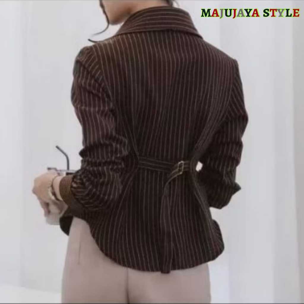 Majujaya Style-Kemeja Stripe Salur Wanita-Luna Stripe Fitted Shirt-Atasan Fit Body Wanita Basic Casual Terbaru 2025