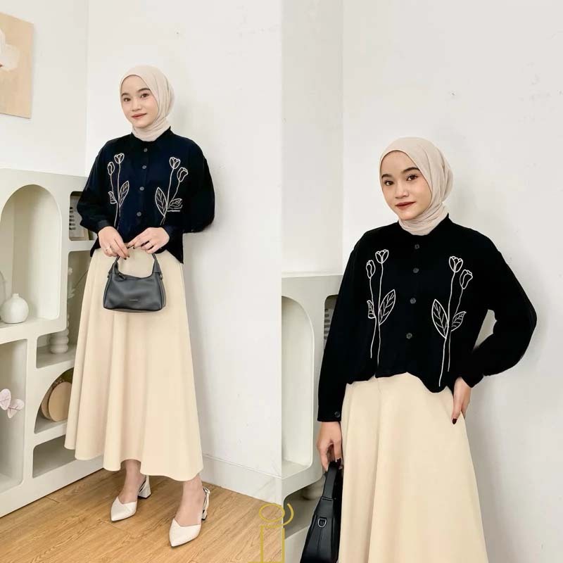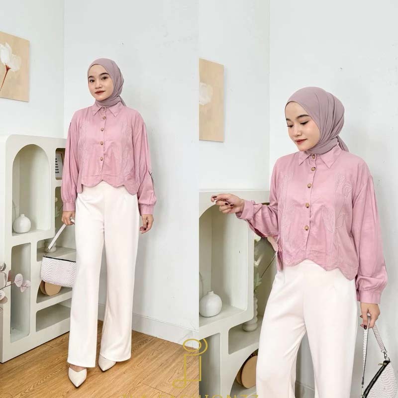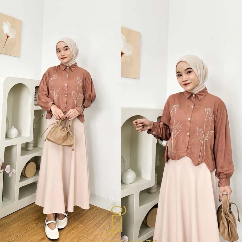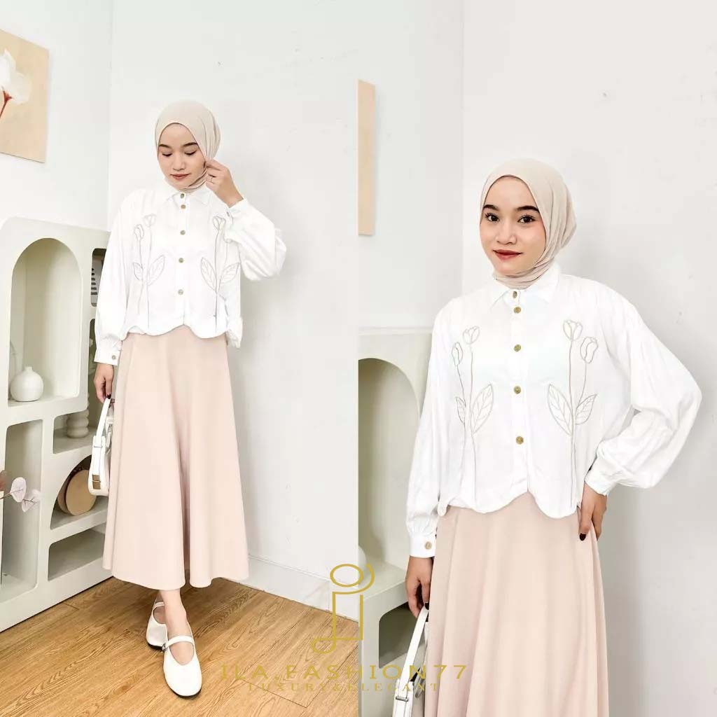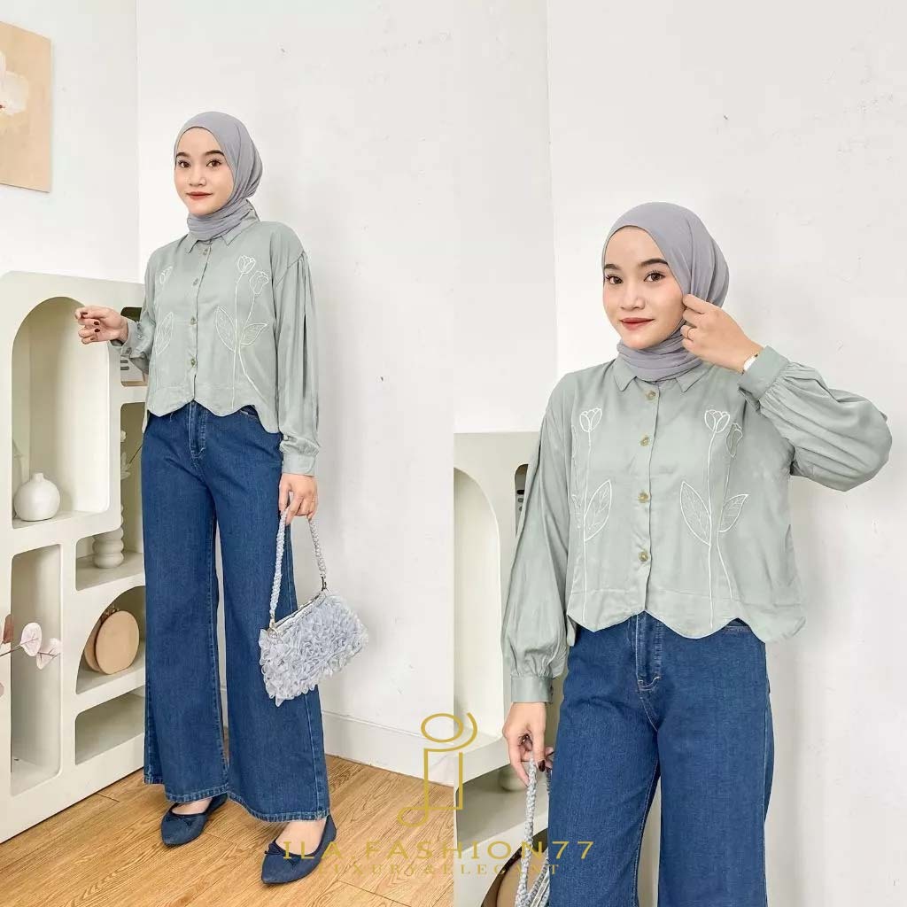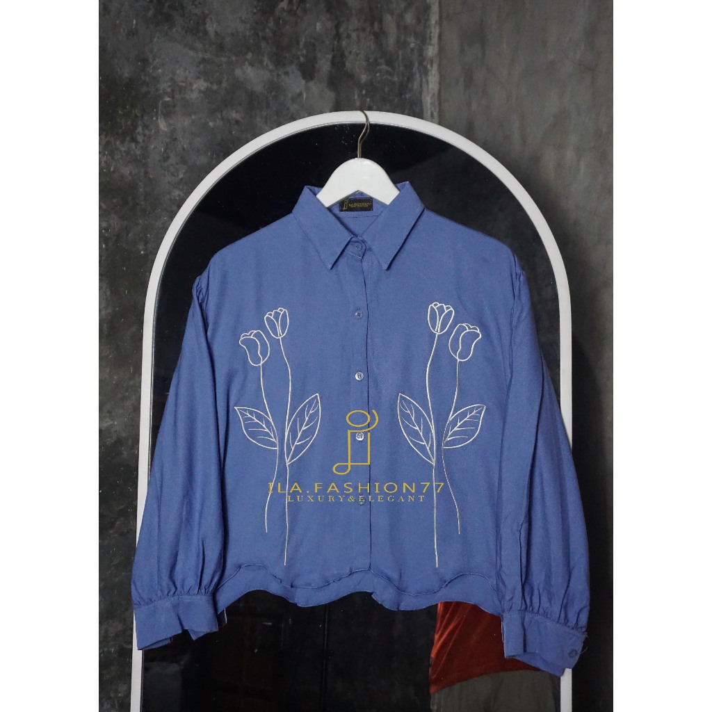 Kemeja Wanita Rayon Twill Bordir Bunga Aryma Top Flower Shirt Embroidery Katun Adem Ila.fashion77