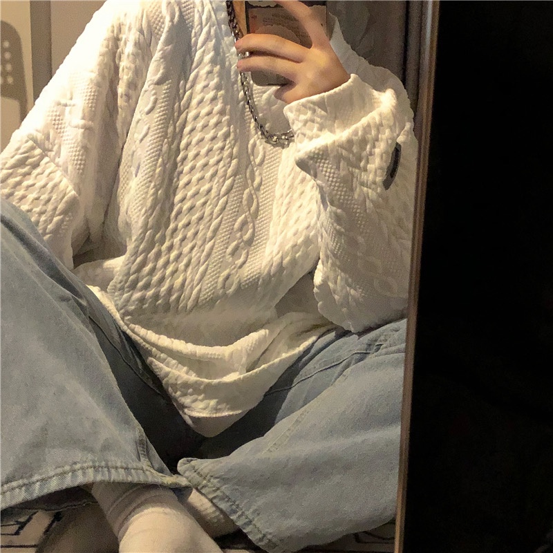 Po floret sweter putih longgar Atasan lengan panjang wanita fashion ukuran plus