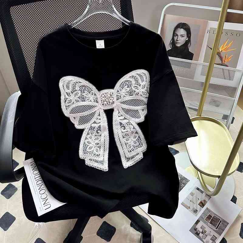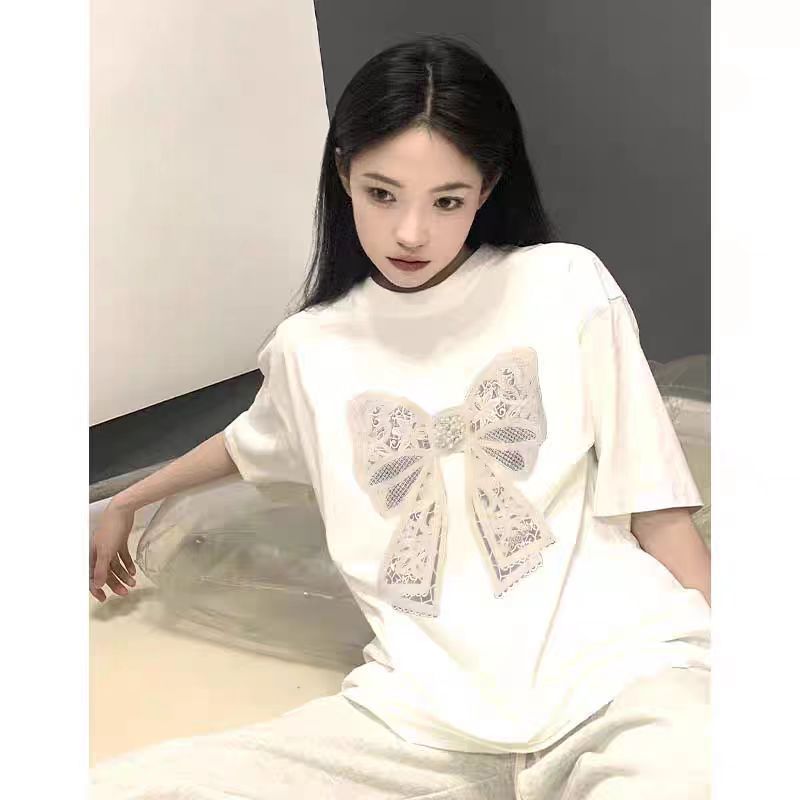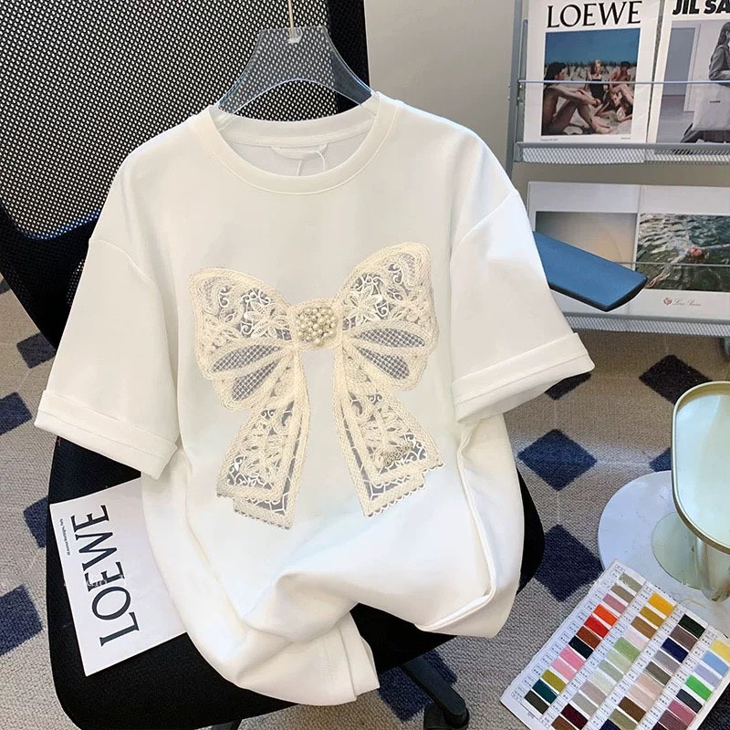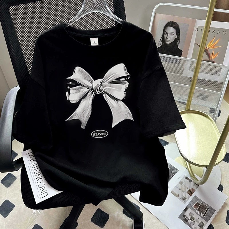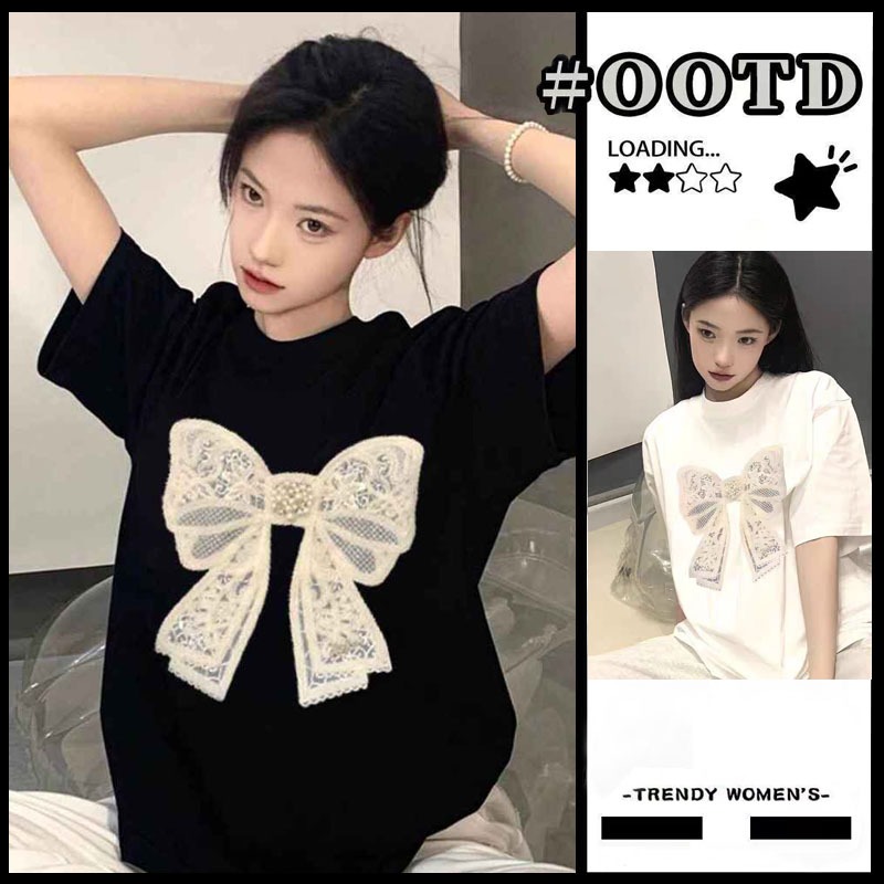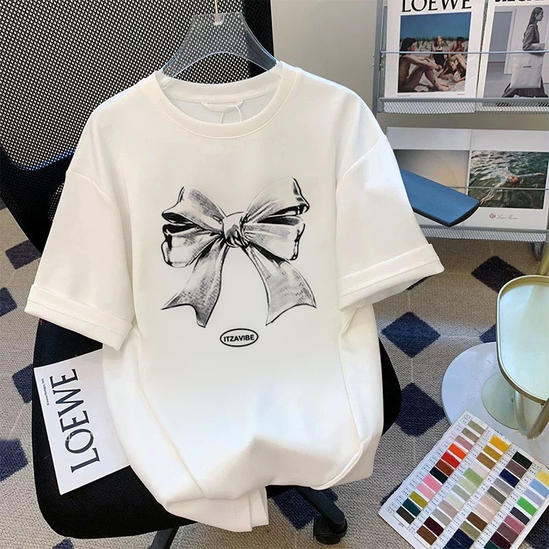 BASIQUE Putih Baju Kaos Oversize kaos pita timbul wanita Korean Style Baju Atasan Wanita Terbaru 100 PERSEN Cotton