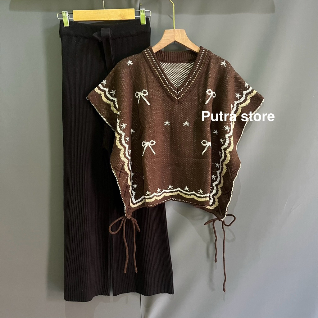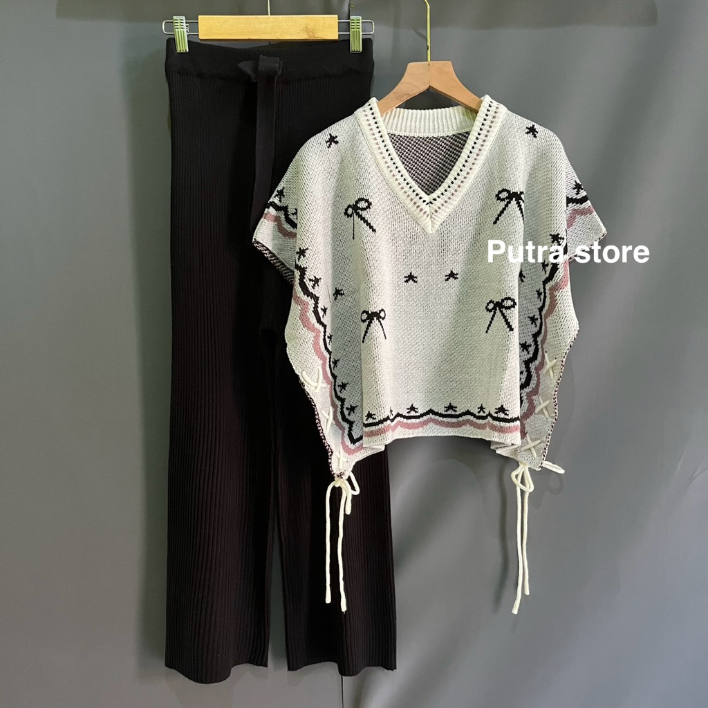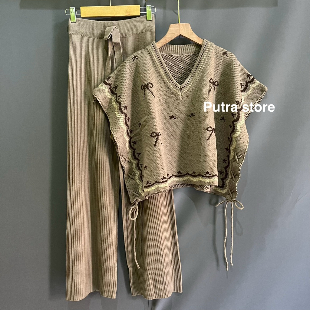 oneset setelan wanita ayundini vest motif pita + kulot rajut premium