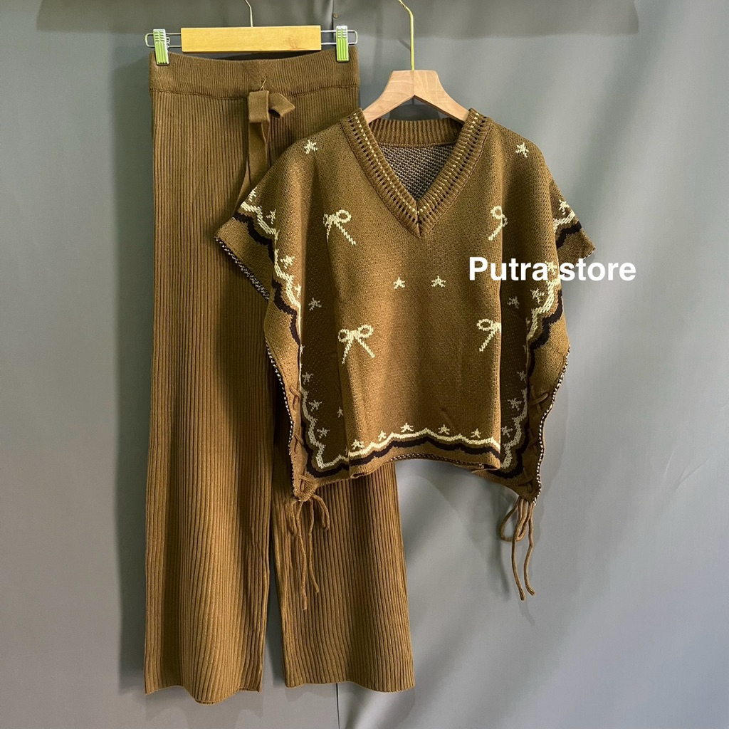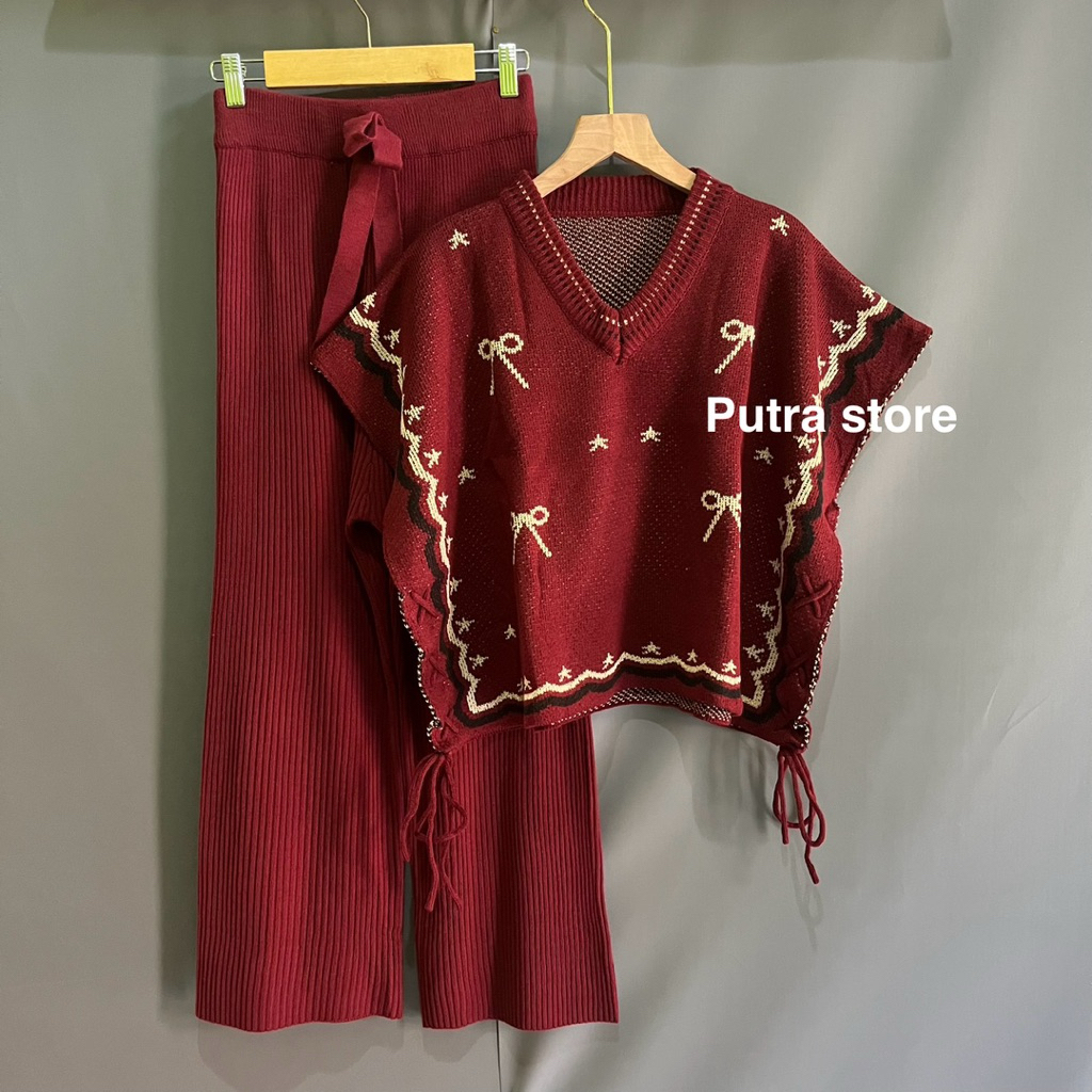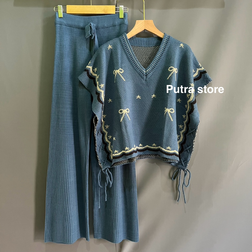 oneset setelan wanita ayundini vest motif pita + kulot rajut premium