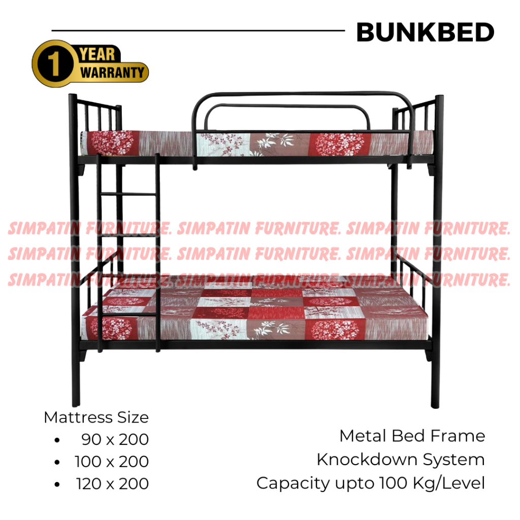 Ranjang Susun 2 Tingkat Anak dan Dewasa Bunk Bed Besi Sistem Knockdown DIY