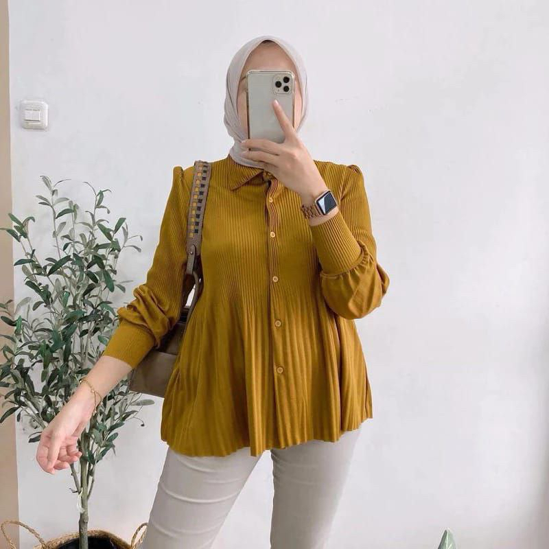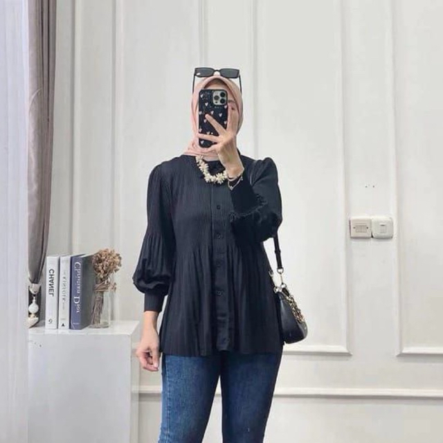 Atasan wanita Terbaru Kemeja Plisket Tisya Blouse Kekinian