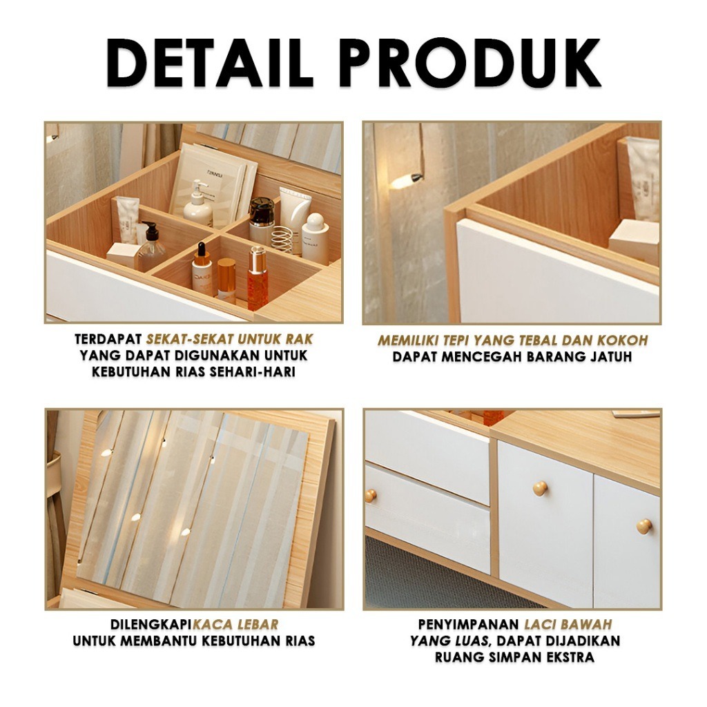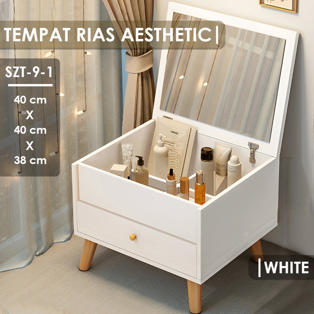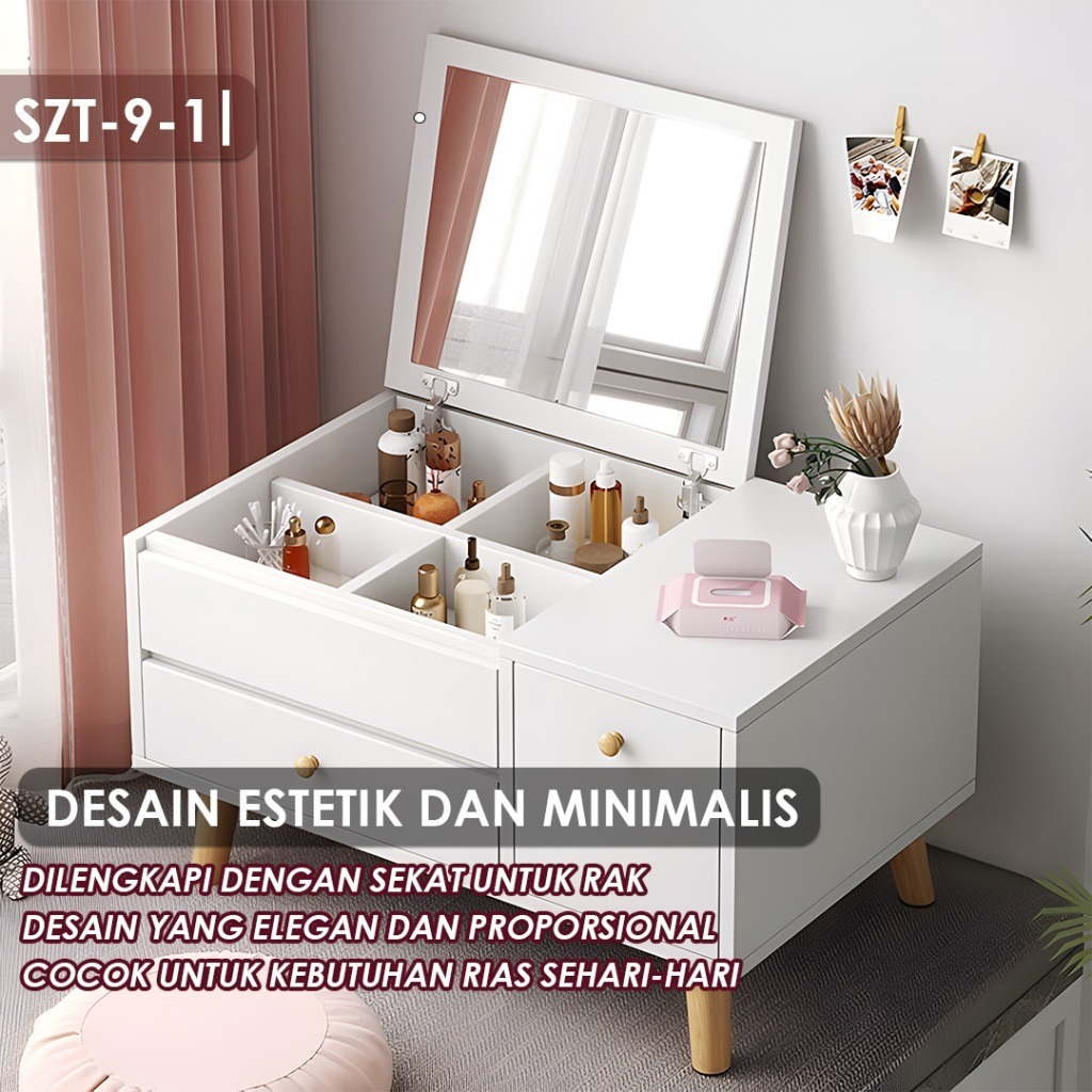 Laris_Unik SZT-9 Meja Rias Cermin Dengan Laci / Meja Rias Minimalis / Meja Rias Kayu Aestetik / Meja Rias Clamshell