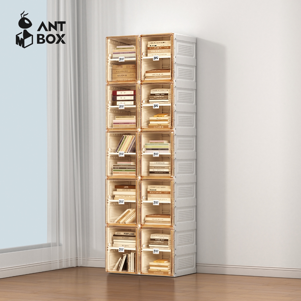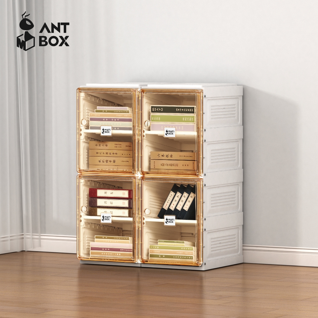 Rak Buku Lipat Kabinet Lipat Multifungsi Lemari Buku Susun Pintu Magnet Transparan Organizer