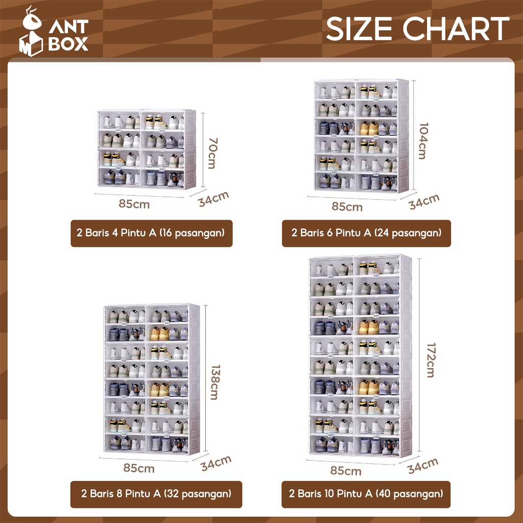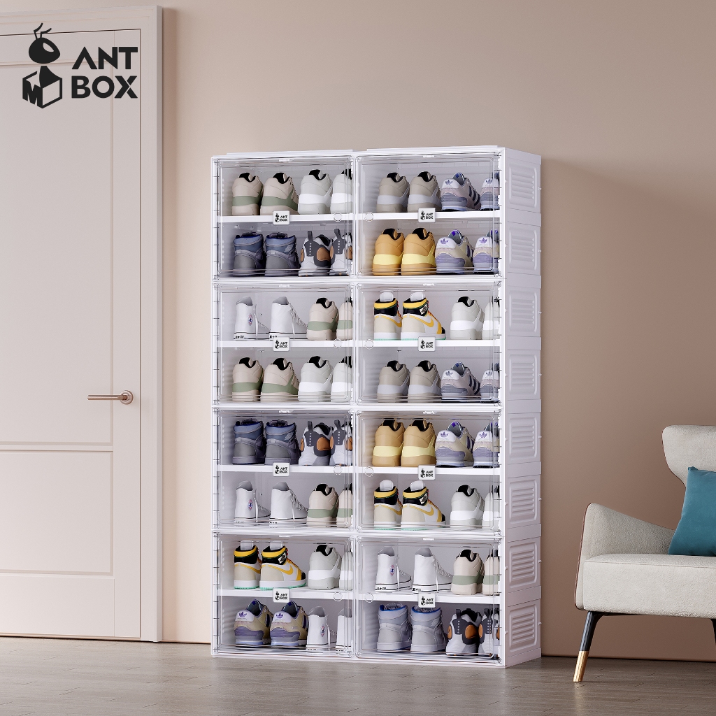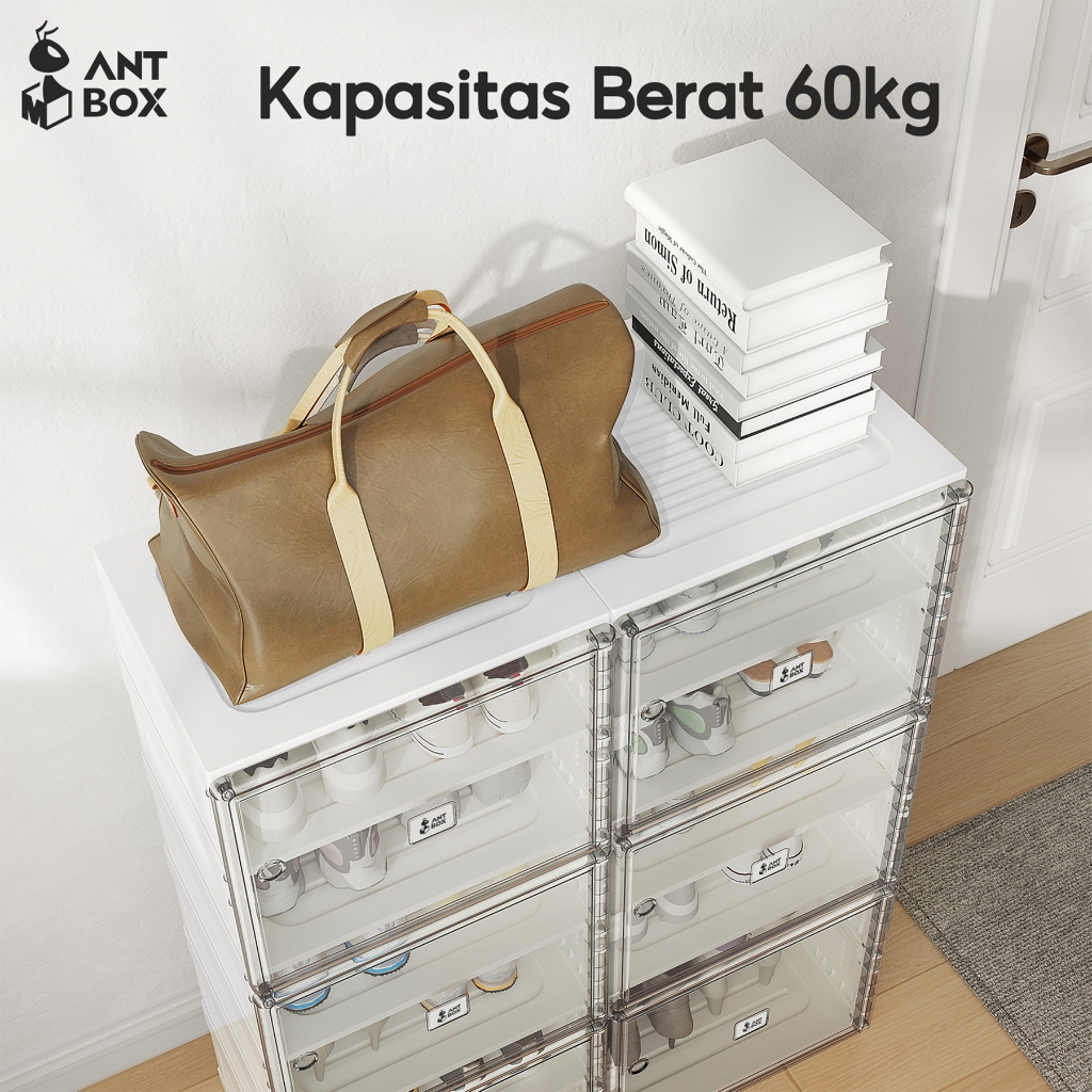 Kabinet Sepatu Rangka Putih Transparan Kapasitas 32 Pasang Rak Susun Minimalis Anti Debu