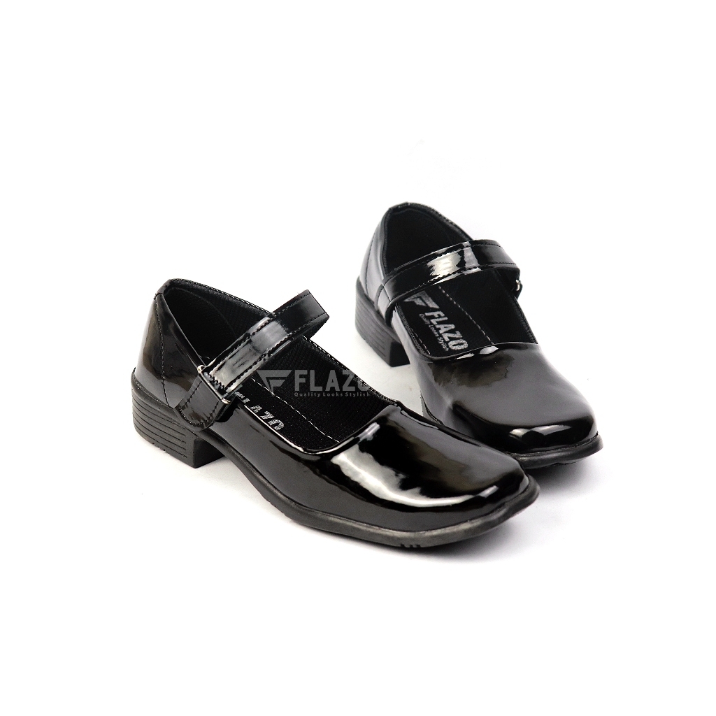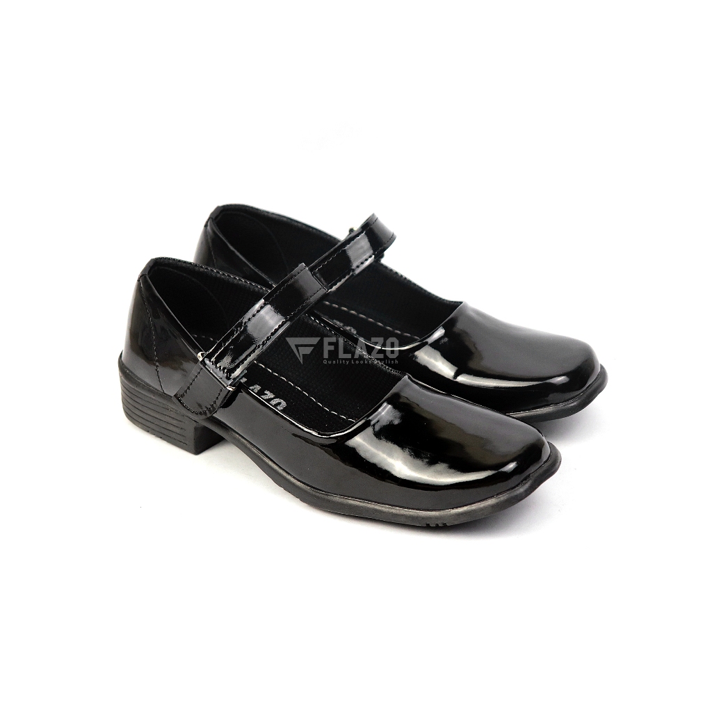 FLAZO Sepatu Fantofel Wanita Hitam Glosiy Sepatu Sekolah Paskibra hak 3 cm Kerja Kantor
