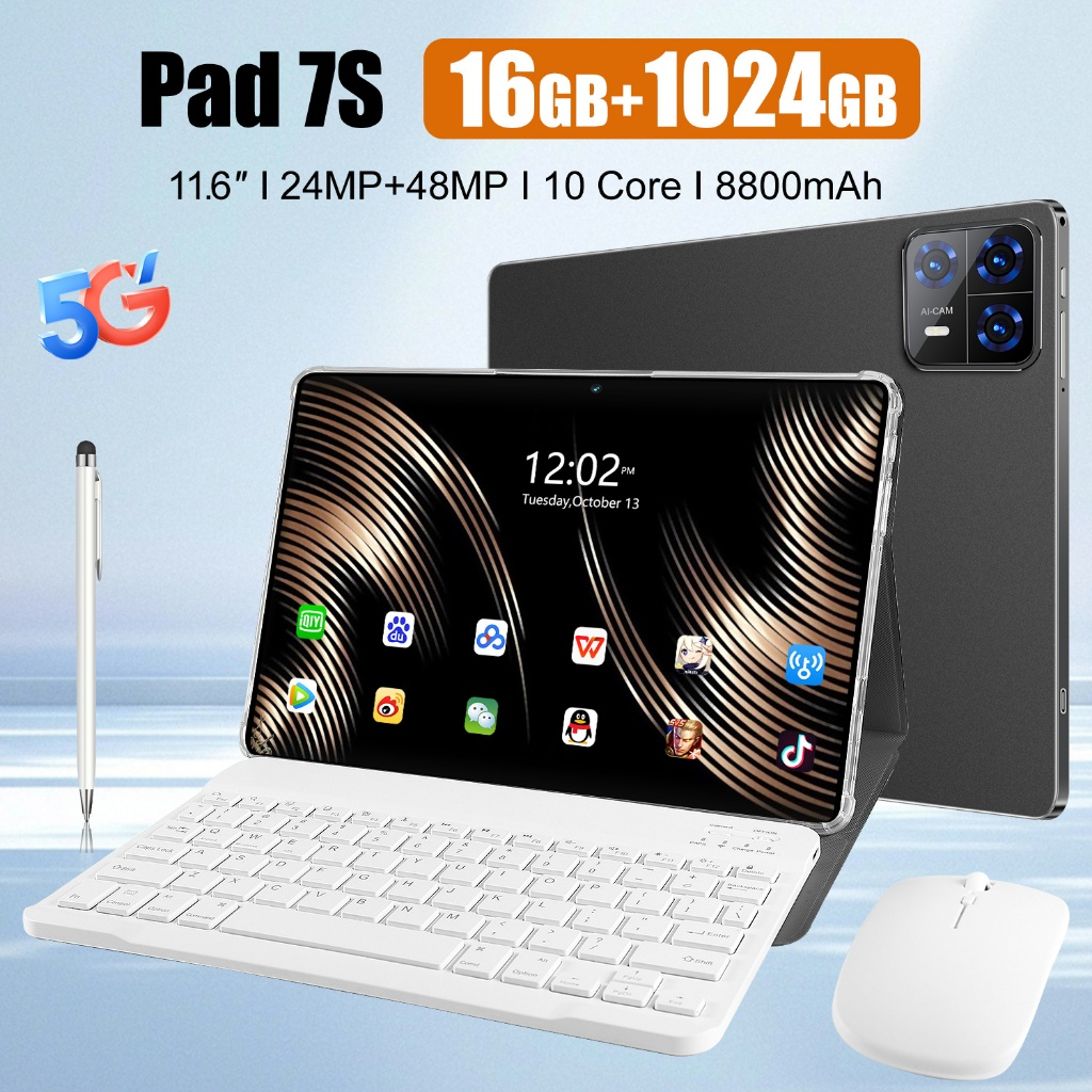 Tablet Pad 7S 11.6 inch (16GB+1024GB) IPS Tablet Murah 5G Dual SIM, WiFi - Untuk Belajar, Kerja & Gaming - Garansi