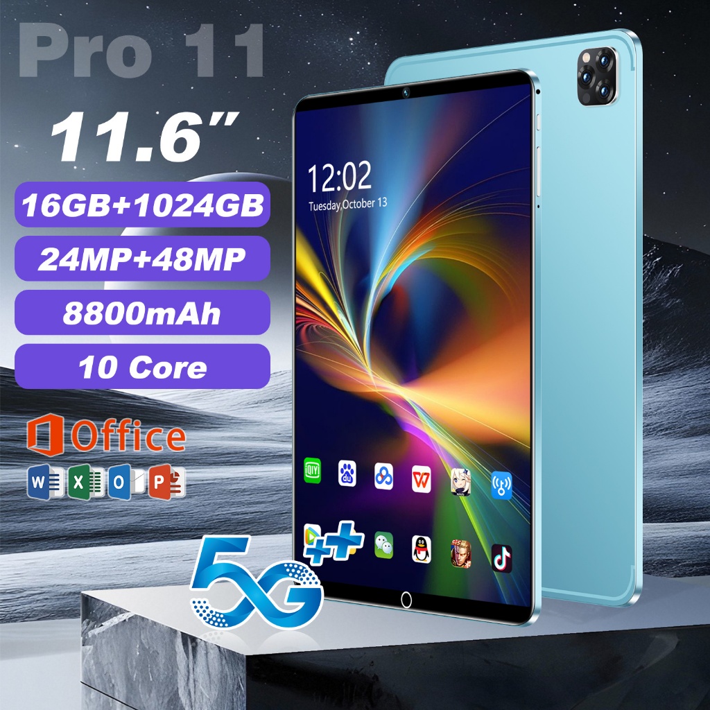 [GRATIS Case Tablet]Tablet Pro11 11.6 inch RAM 12GB+512GB | Android 12 | 5G Dual SIM & Wifi- Untuk Belajar, Kerja &