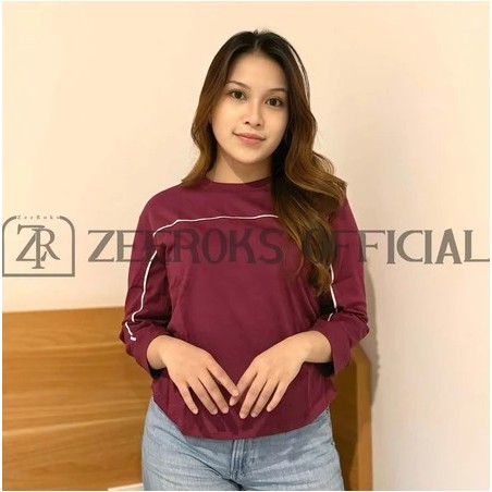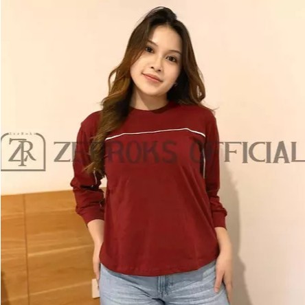 Baju Atasan Wanita Long Sleeve Lisa Garis Putih Bahan Cotton Combed