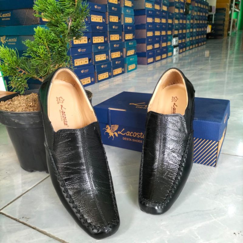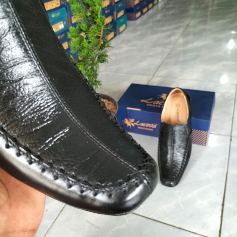 Lacosta Sepatu Pantofel Pria Kulit Asli 100 PERSEN Tanpa tali