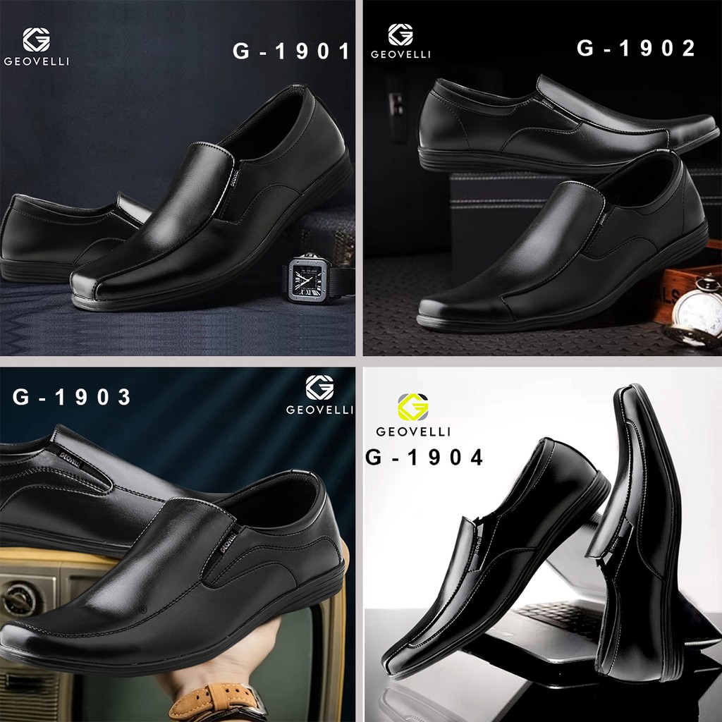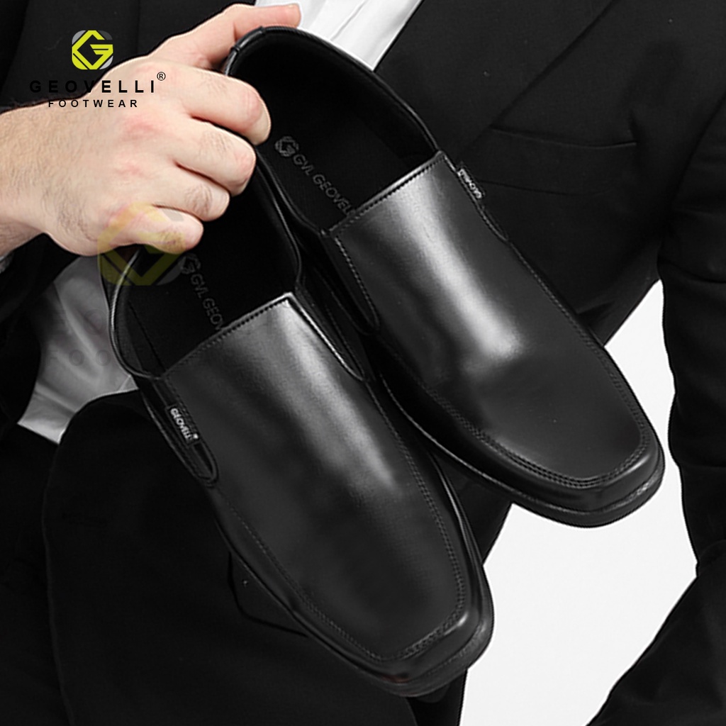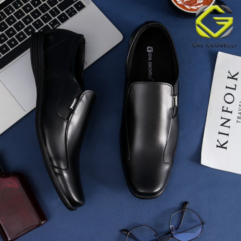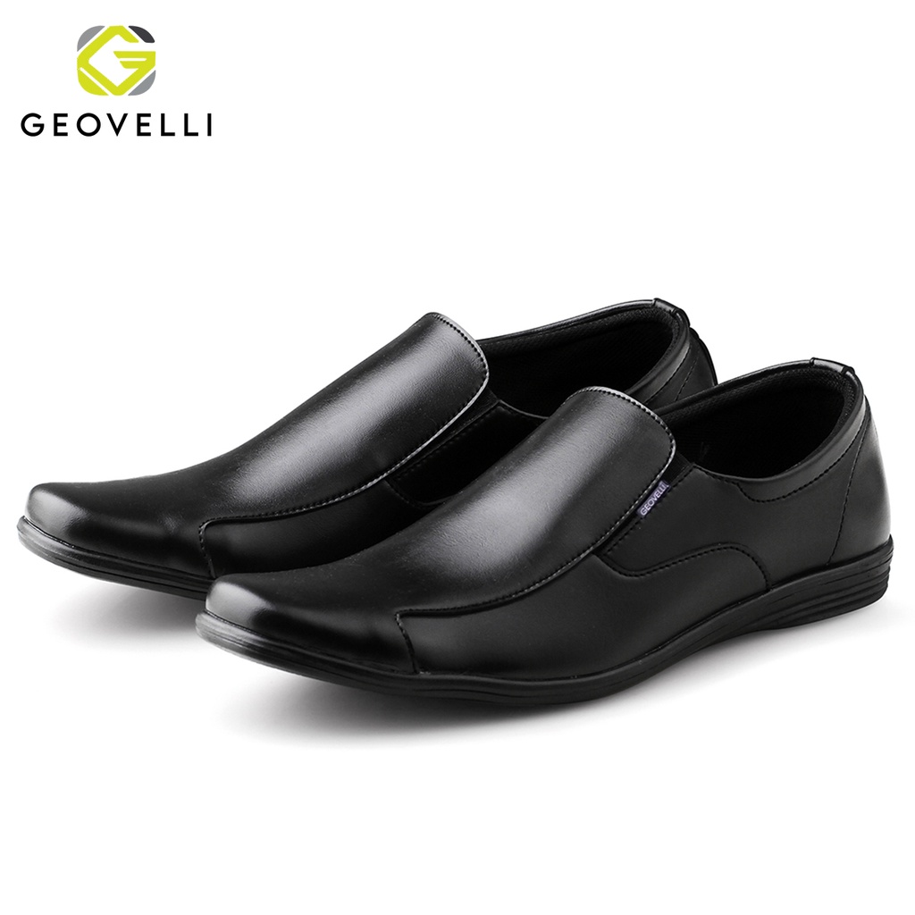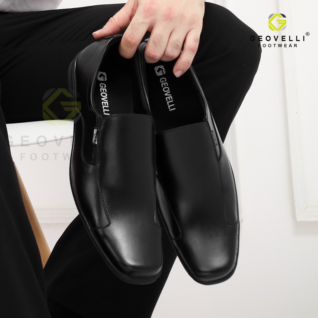 Geovelli Sepatu Pantofel Pria Kerja Kantor Casual Fashion Hitam Buatan Tangan Ready