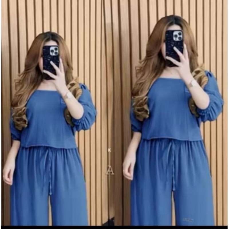 One set Cringkle Wanita / Setelan Alica Set Crop Top Wanita Kekinian /Baju setelan One set Crinkle