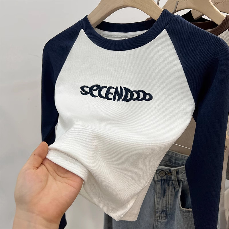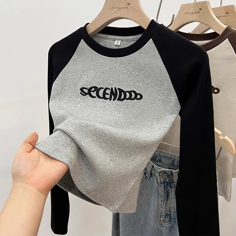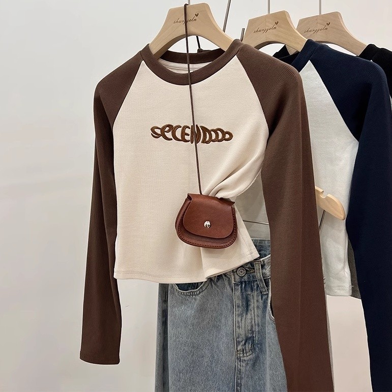 Kaos Raglan lengan panjang/Kaos crew neck warna kontras/Dongdaemun Korea Selatan