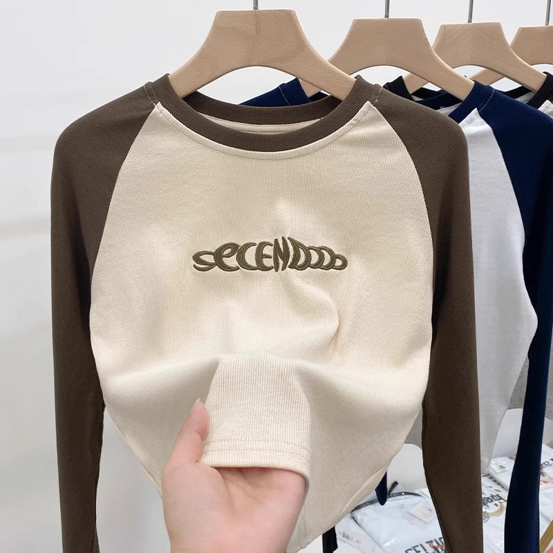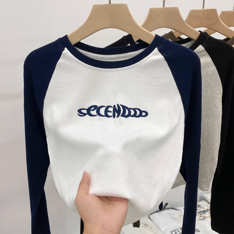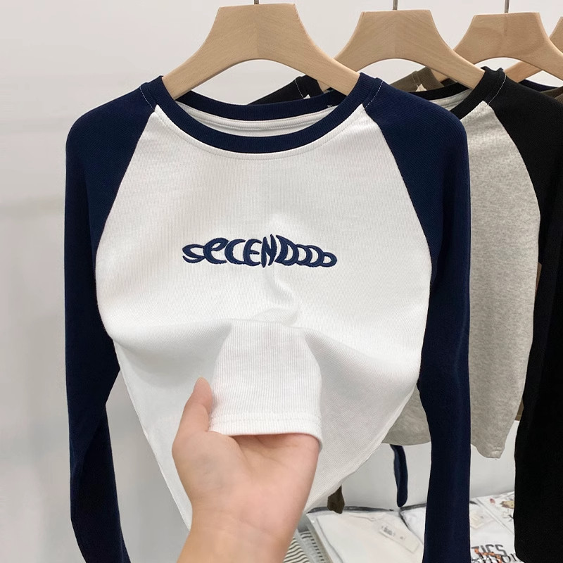 Kaos Raglan lengan panjang/Kaos crew neck warna kontras/Dongdaemun Korea Selatan