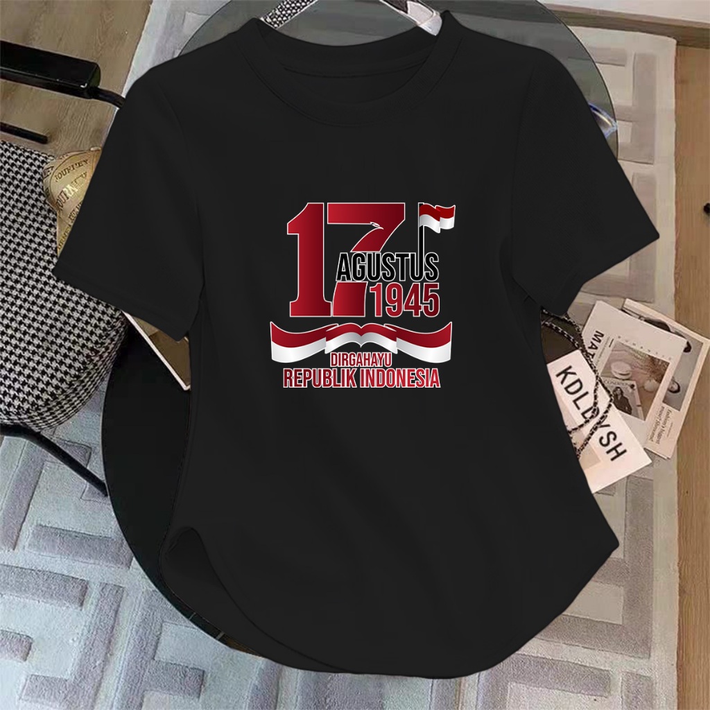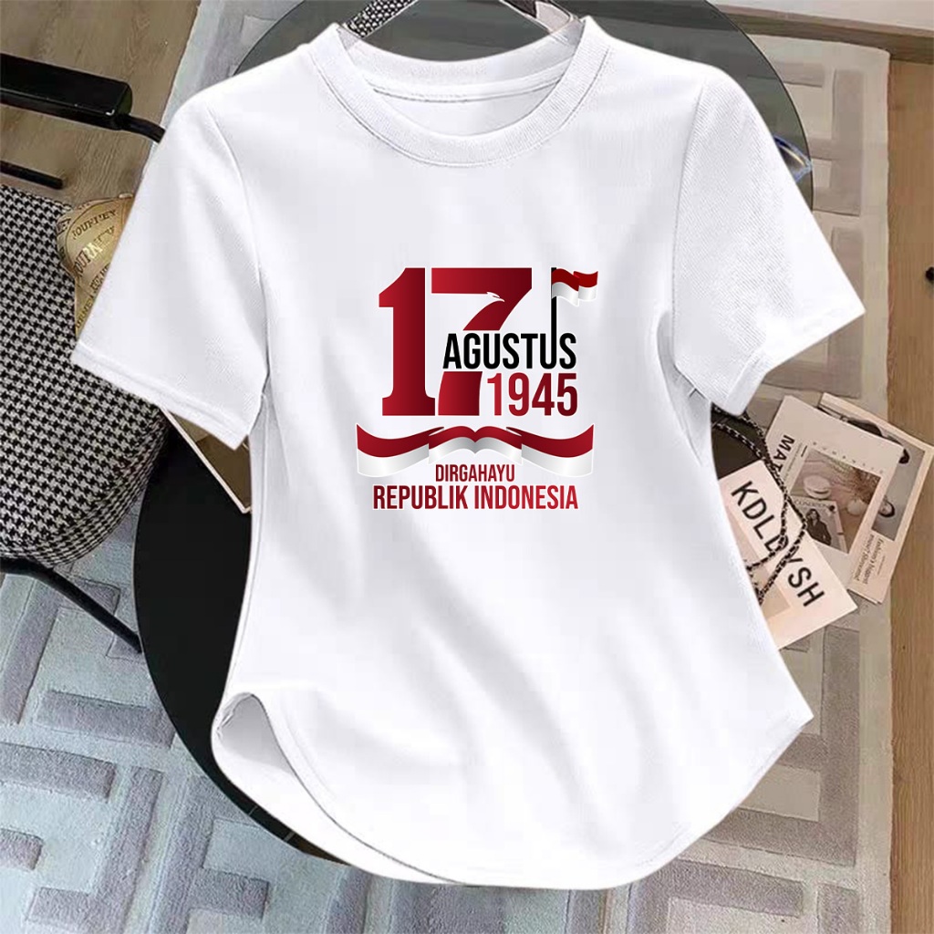 Kaos Oblong Wanita 17 AGUSTUS /Bahan Spandek Distro Printing Premium/Lengan Pendek/Atasan/Baju Kasual/T-shirt