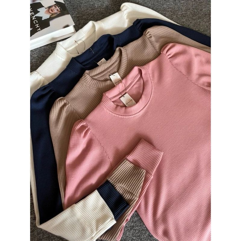 Kaos Atasan Puffy Shoulder Top Waffle Waffer Wanita Terbaru Kekinian