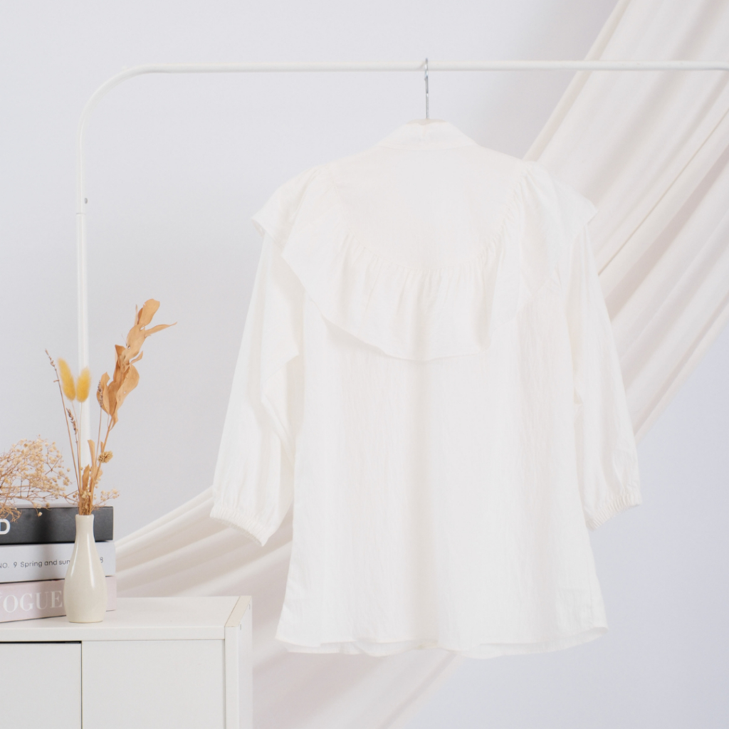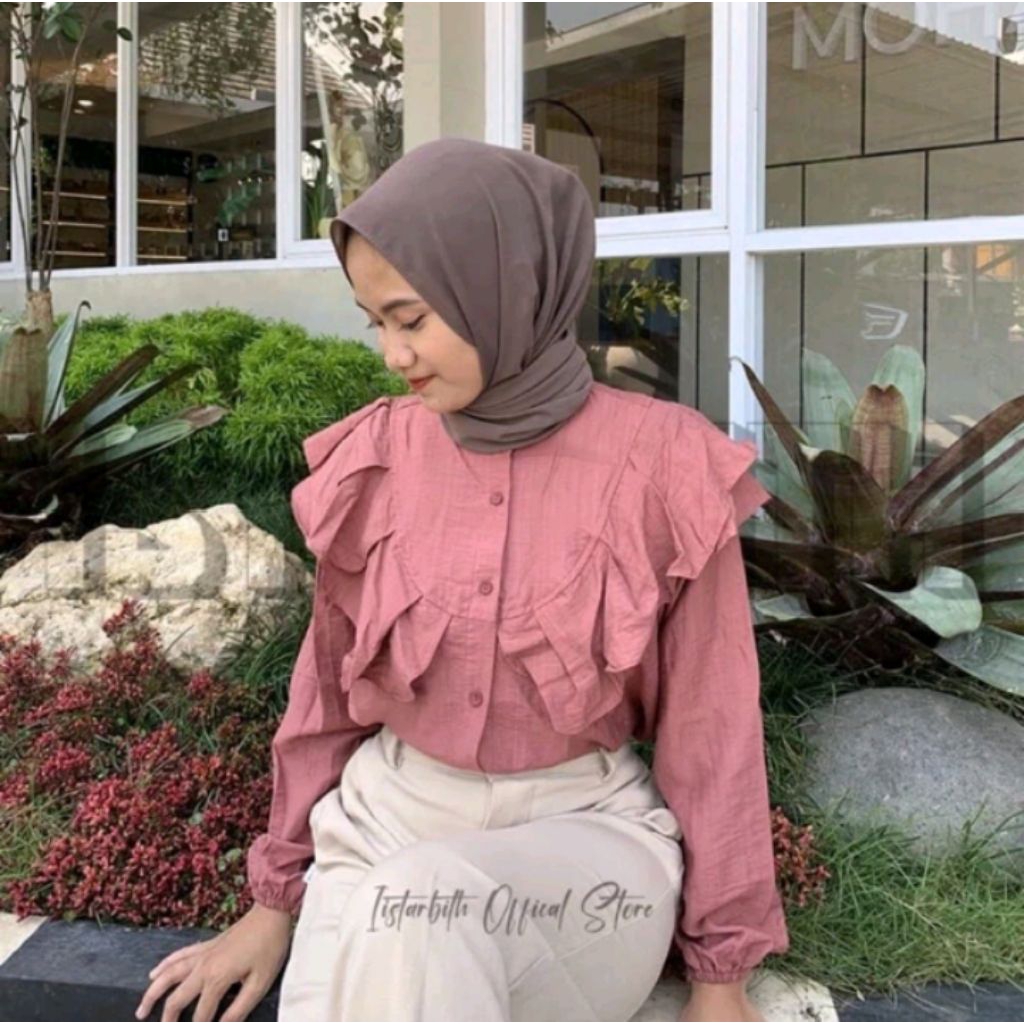 INSTORE - Blouse Ruffle Polo Linen Rafella Jumbo Ld 120 Baju Kemeja Wanita Terbaru 2025 Kekinian Gaya Kasual Basic