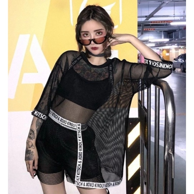 SarangFashion Blouse Jala Two Face Atasan Wanita Kekinian Jaring Korean Style Bigsize Jumbo Harajuku