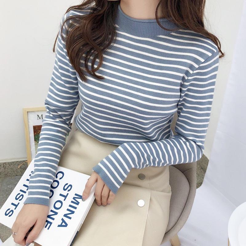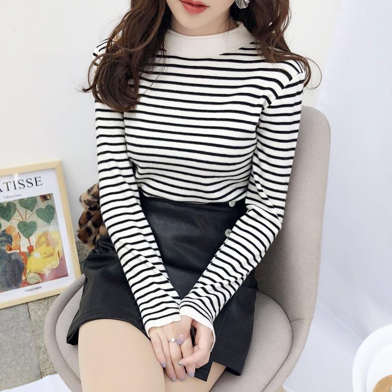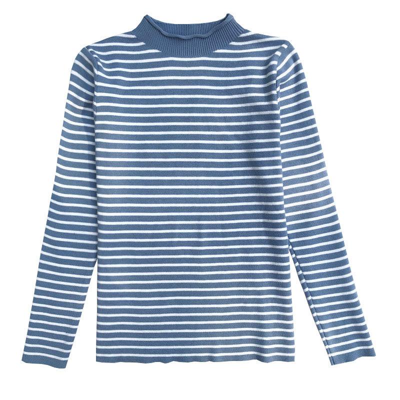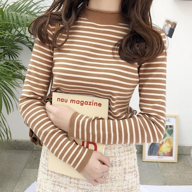 Inner Rajut Turtleneck Lengan Panjang Garis Garis / Atasan Rajut Wanita