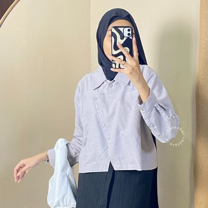Kemeja Wanita Ivone Top Linen Atasan Crop Wanita