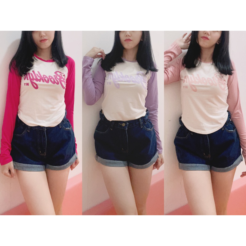 Kaos combi lengan panjang | tshirt lengan panjang combi | kaos tulisan lengan panjang combinasi | kaos wanita murah