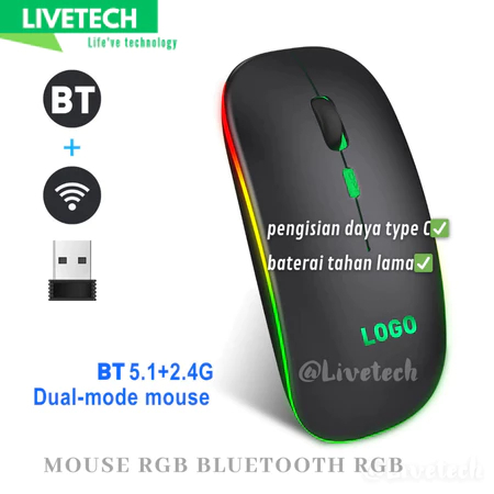 LIVETECH Mouse Wireless Rechargeable Led RGB 2.4G+ Bluetooth Mouse 2 In1 Dual Mode Bluetooth & Wireless RGB Rechargeable