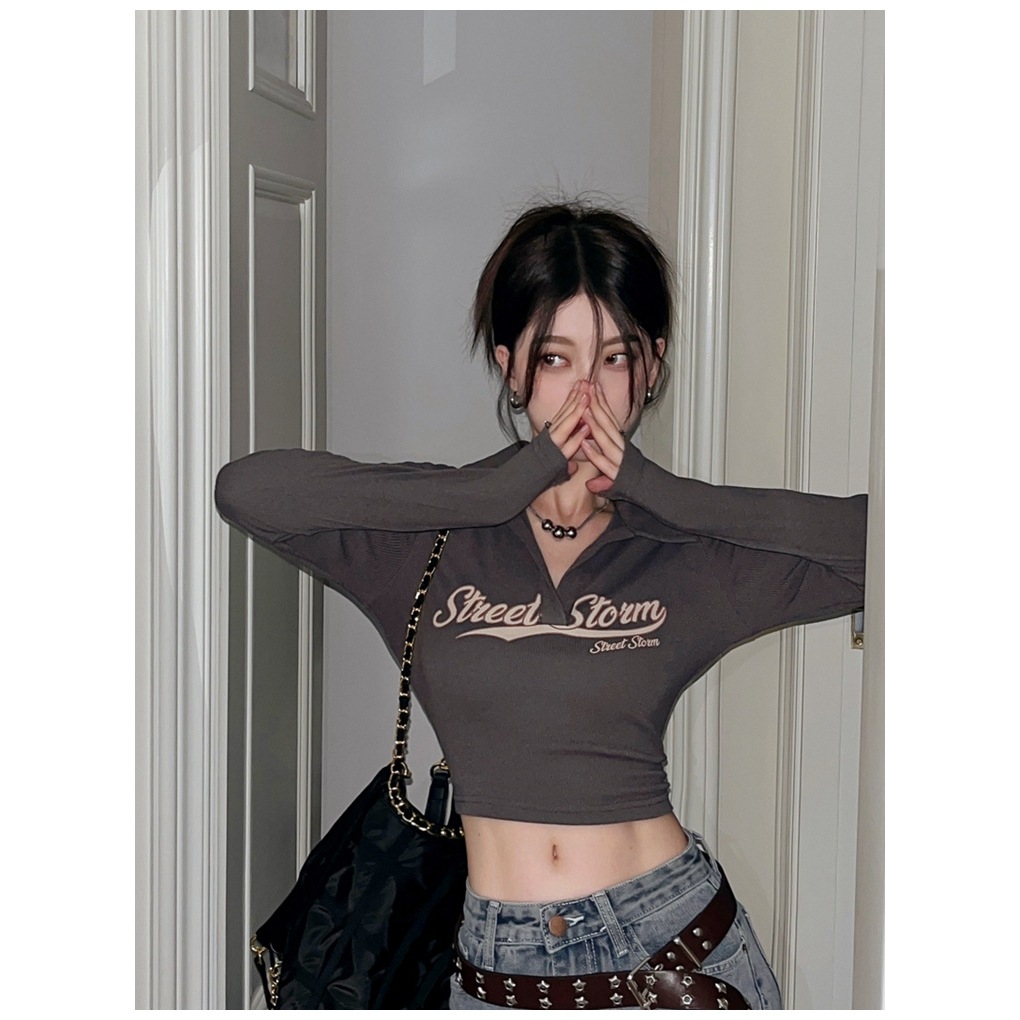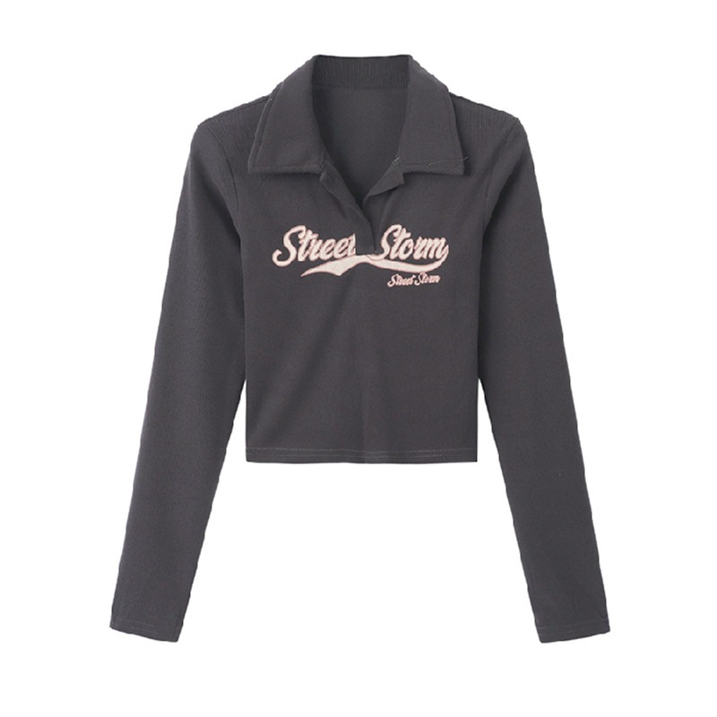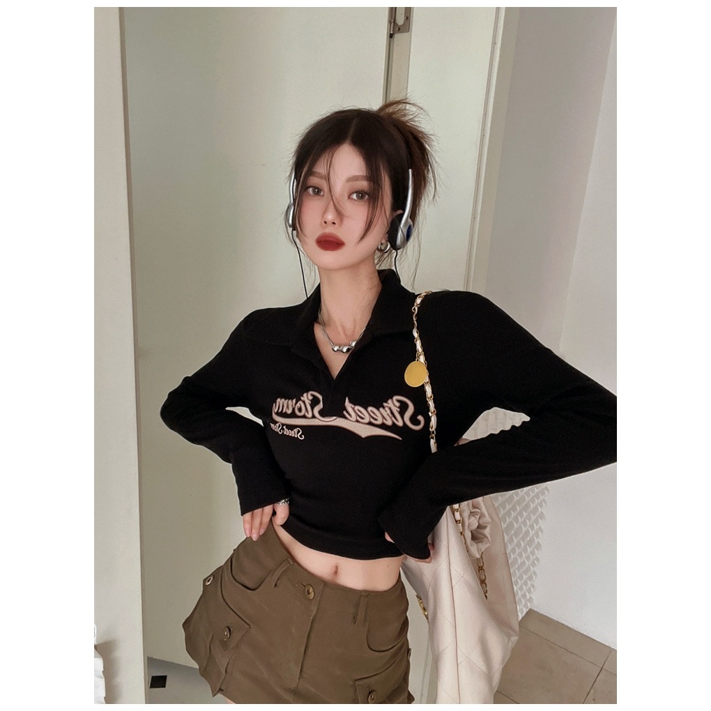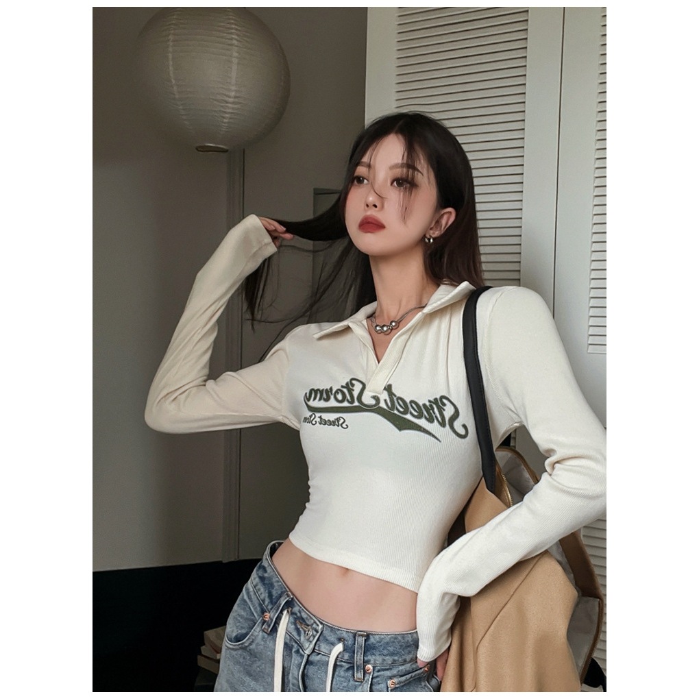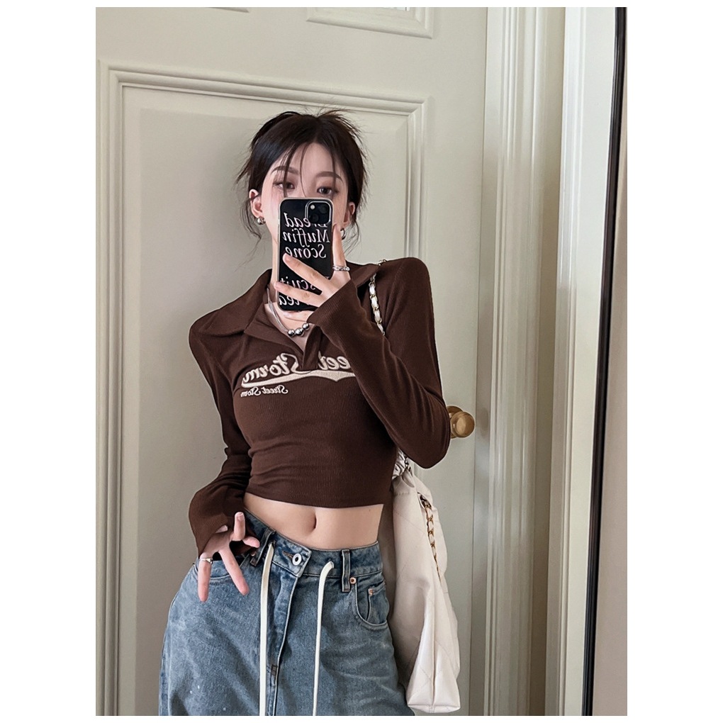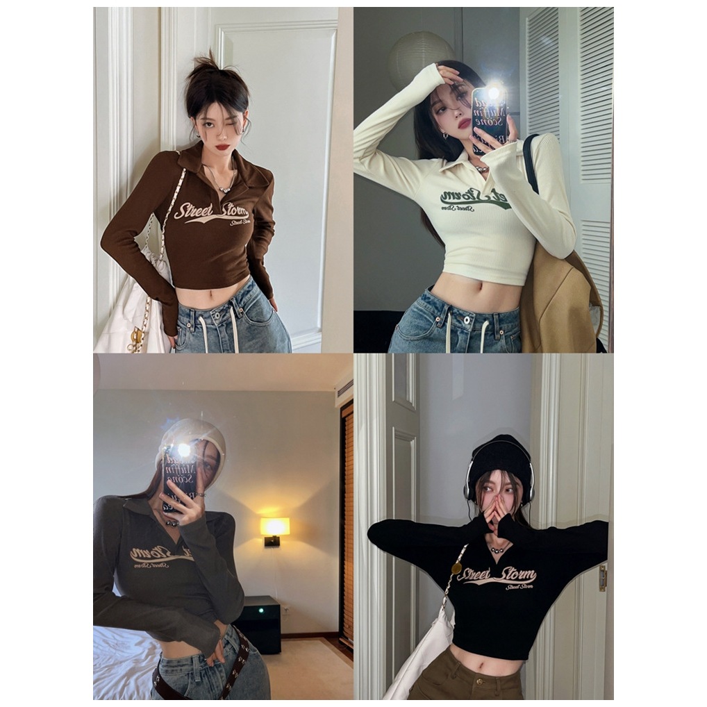 MISS'O BJ1788 Baju Atasan Crop Wanita Lengan Panjang Knit Kaos Fashion Korea long Sleeve Katun