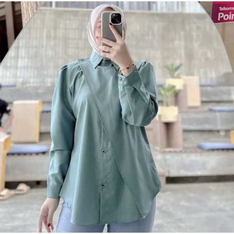 HANIN KEMEJA ATASAN WANITA PANJANG KEMEJA HANIN COTTON BLOUSE Kemeja Wanita Premium