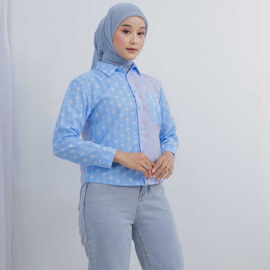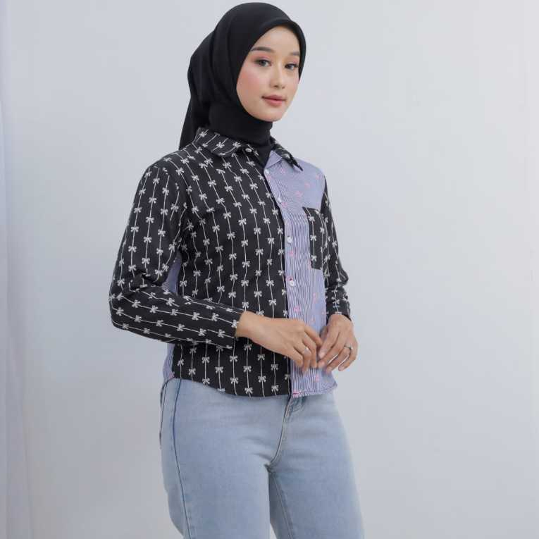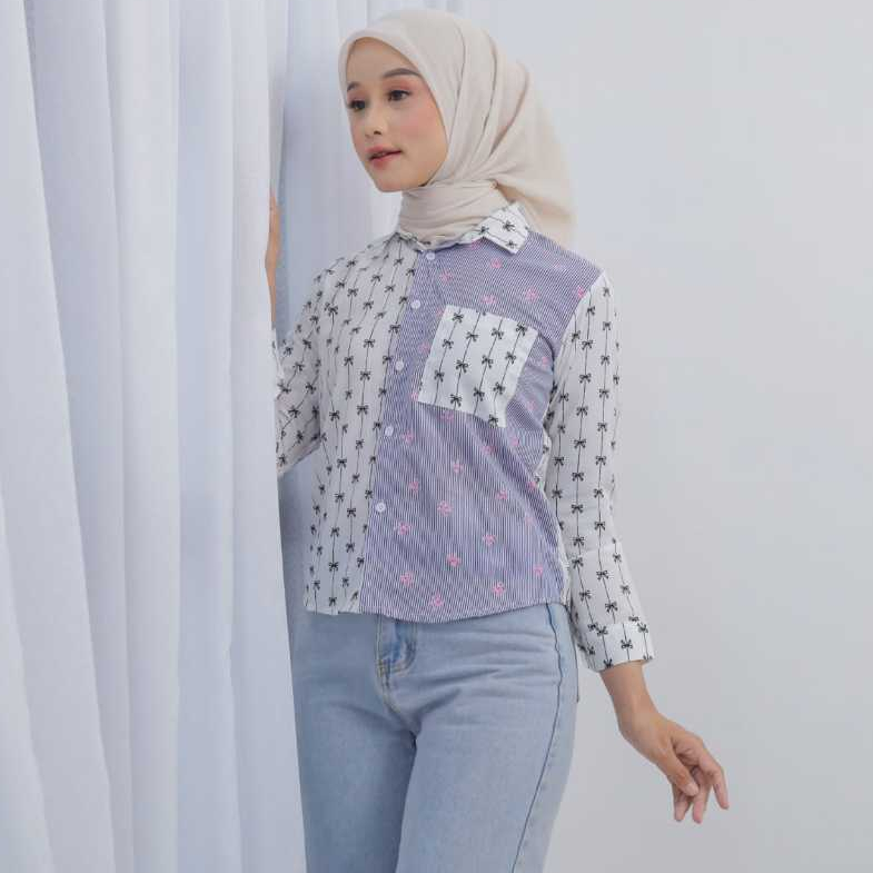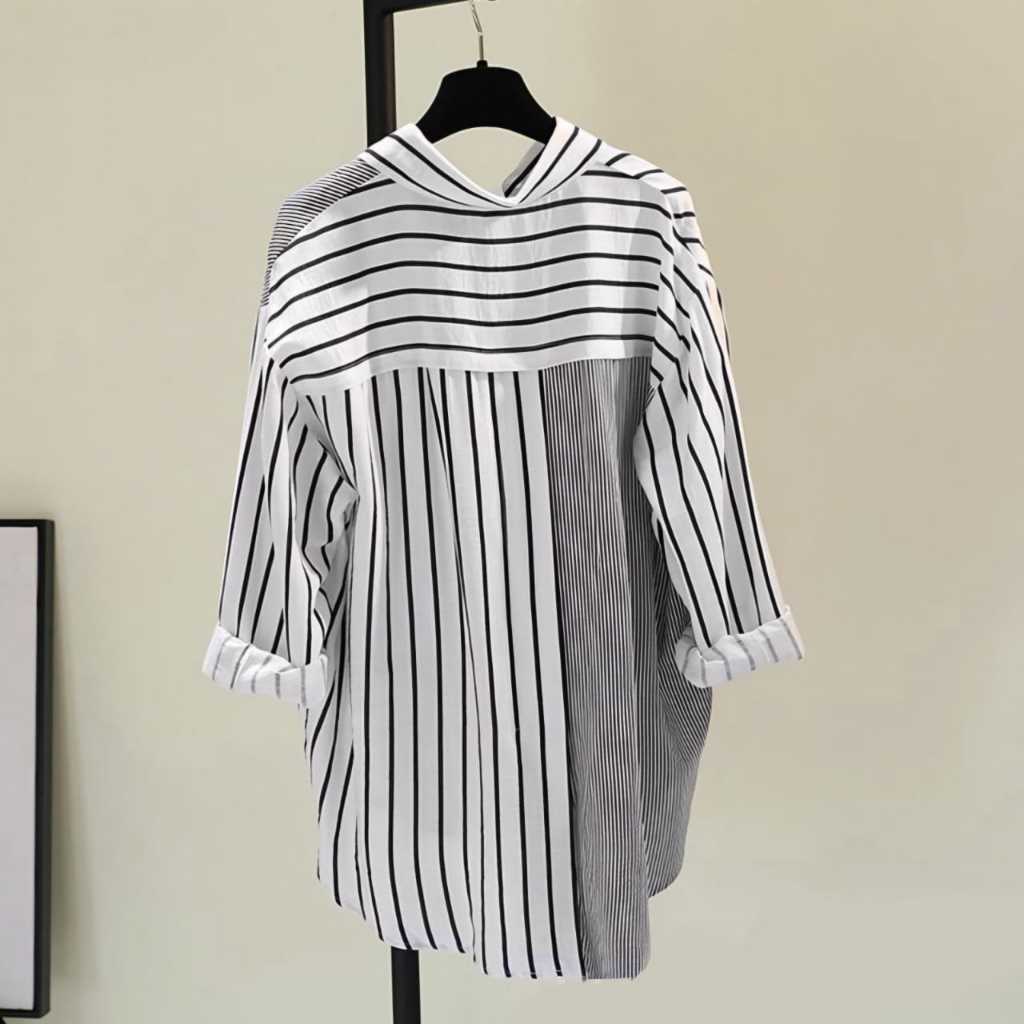 kemeja salur wanita//kemeja saku//baju atasan remaja dewasa//outfit kekinian//kemeja terlaris