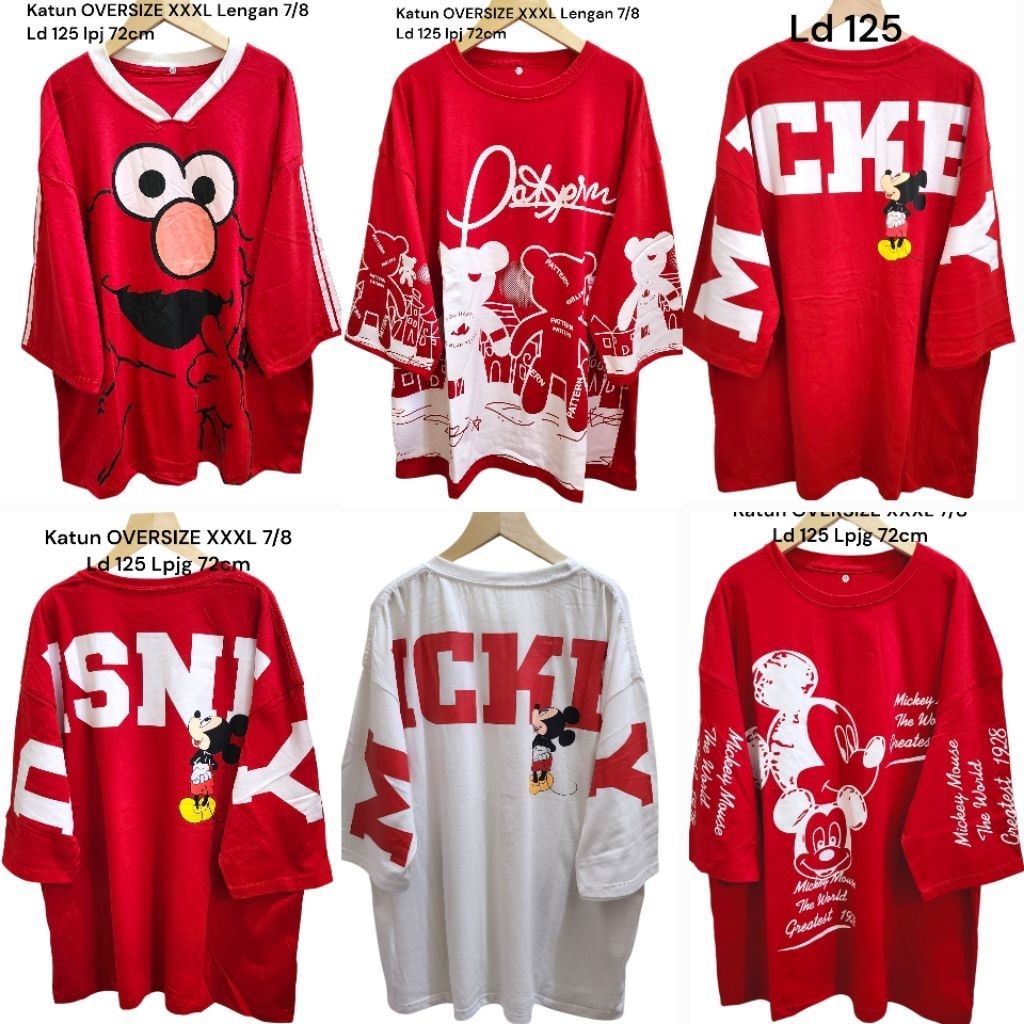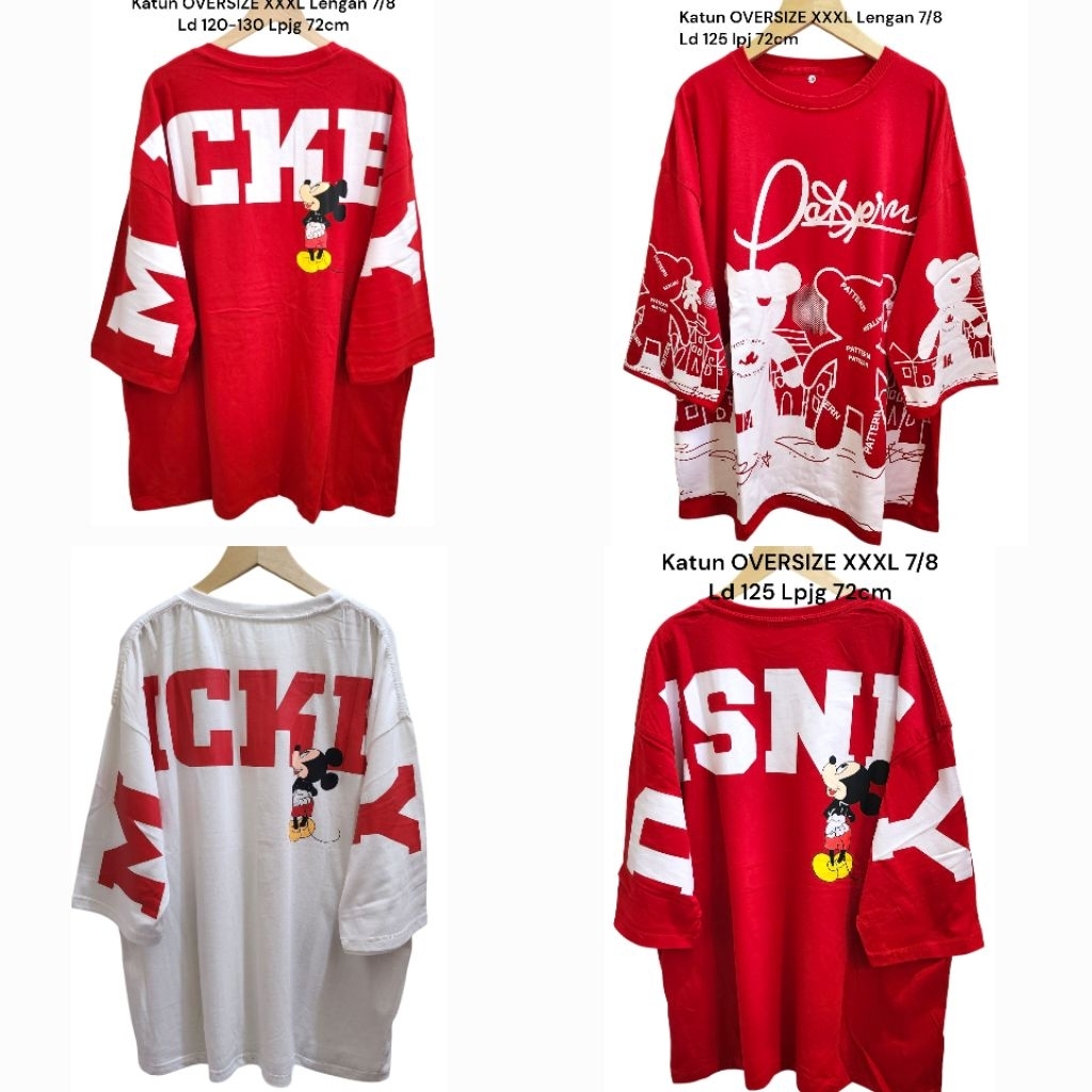 Baju Kaos MERAH PUTIH Oversize Jumbo XXXL BIGSIZE lengan 7/8 Ld 125