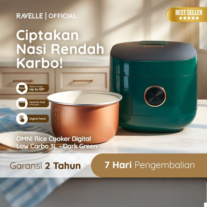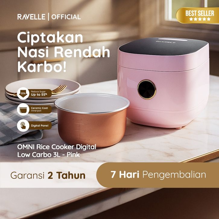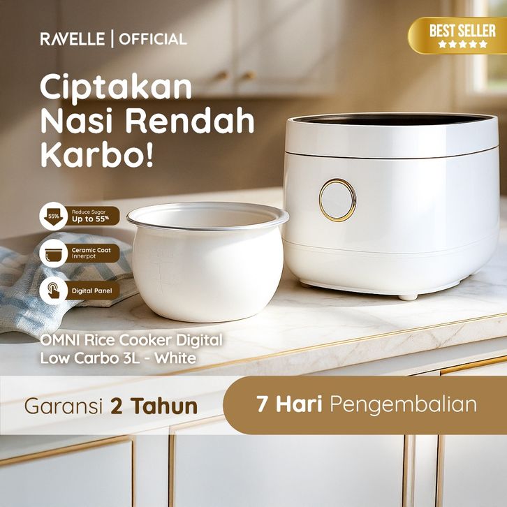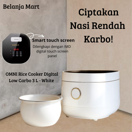 Ravelle Omni Rice Cooker Digital Low Carbo Less Sugar 1.2 Liter Nasi (3 Liter) Stainless Steel inner Pot - Penanak Nasi