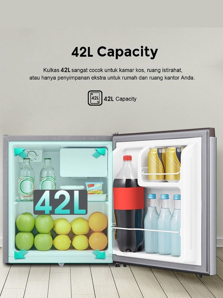 Hisense Kulkas RR58D4IGN Refrigerator Mini Bar Kapasitas 42L Warna Silver Tingkat Kebisingan Rendah 2L