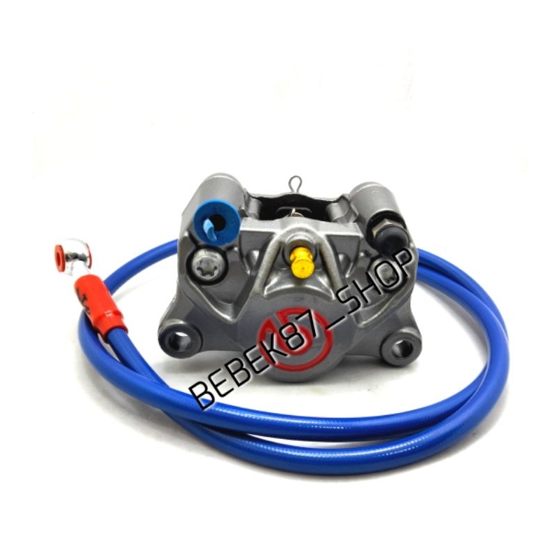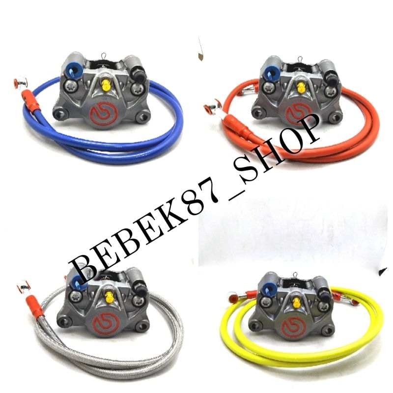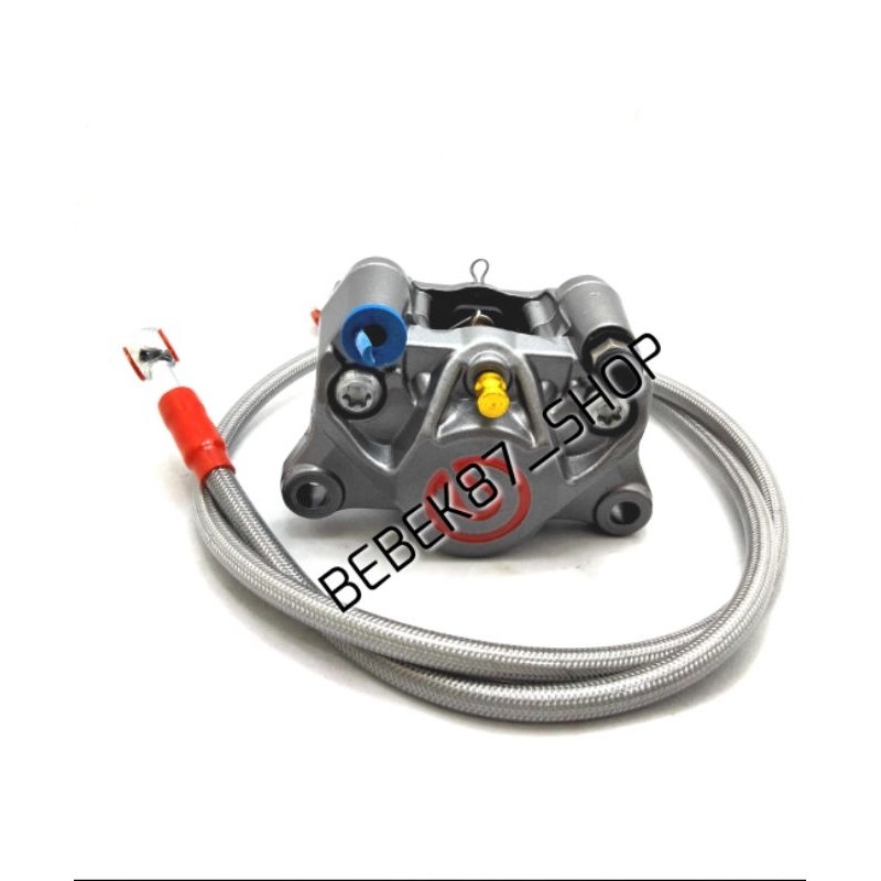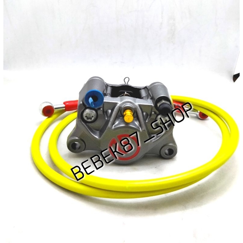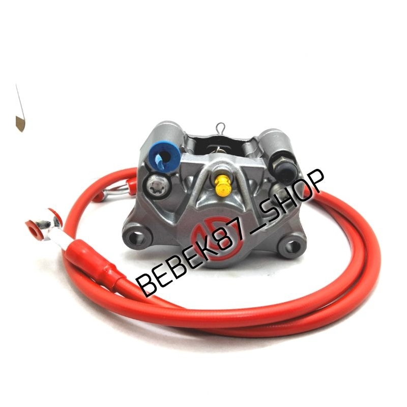 KALIPER BIG LOGO 2 PISTON PLUS SELANG REM DEPAN CARBON 90CM UNIVERSAL MOTOR