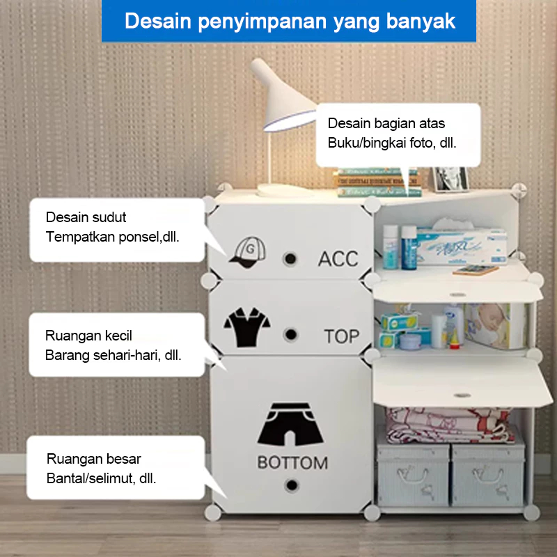 Rak Nakas Plastik Lemari Kecil Mini Lemari Penyimpanan Kamar Tidur Lemari Penyimpanan Anak-anak Multi Fungsi Berkap