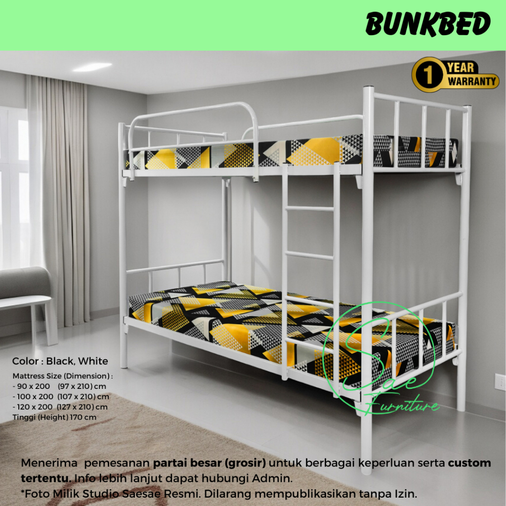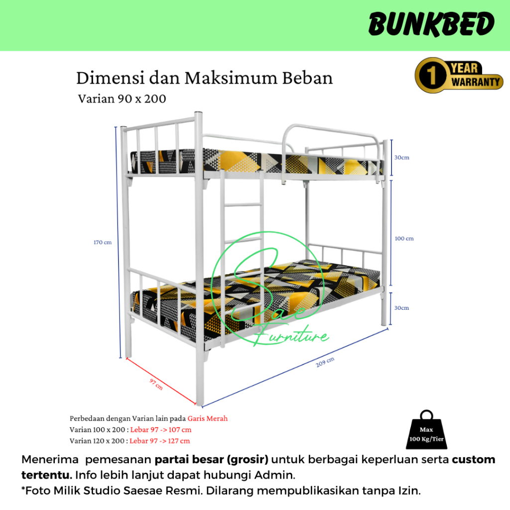 Ranjang Susun Besi Tingkat Bunkbed Murah Asrama Kos Mess 90X200 100X200 120X200 (S2)