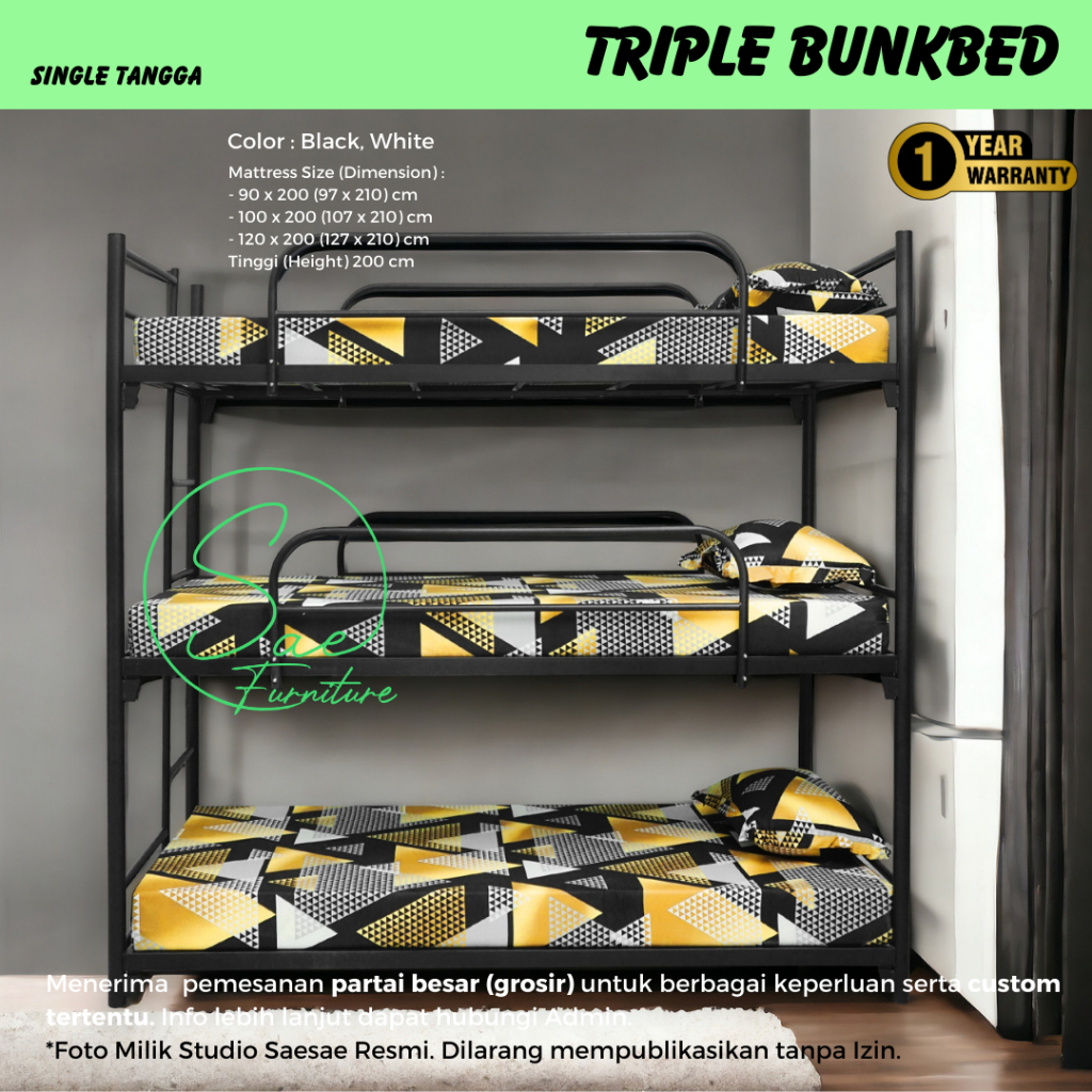 Tempat Tidur Ranjang Susun 3 Tingkat Besi Minimalis Knockdown 90x200 100x200 120x200 ST (S3)