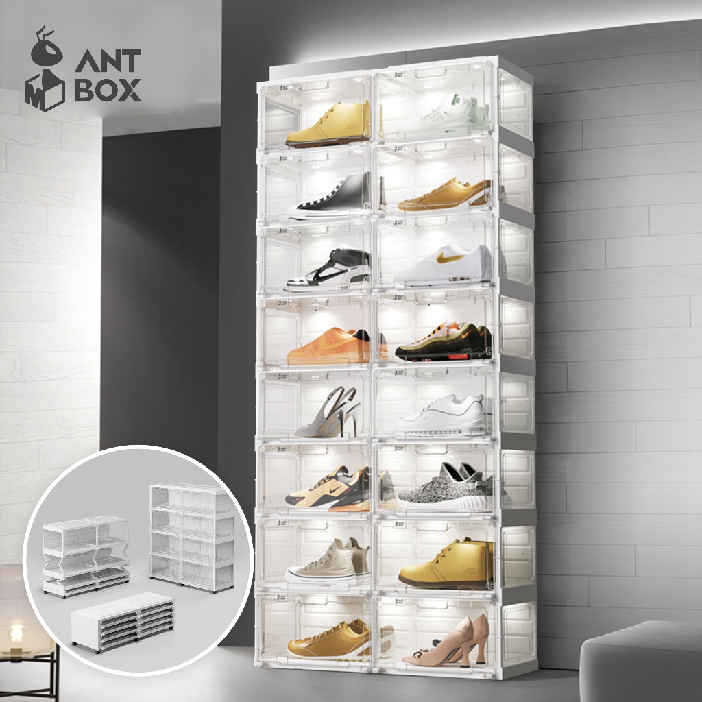 Rak Sepatu LED Aesthetic Kotak Storage Transparan 2 Baris 8-16 Pasang Sensor Suara Anti Debu